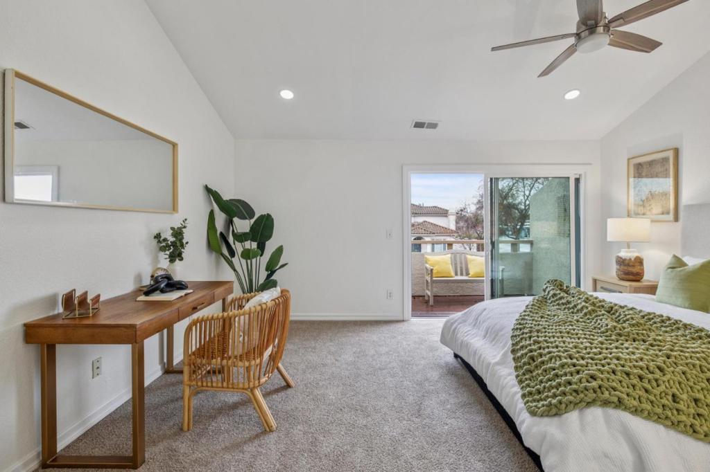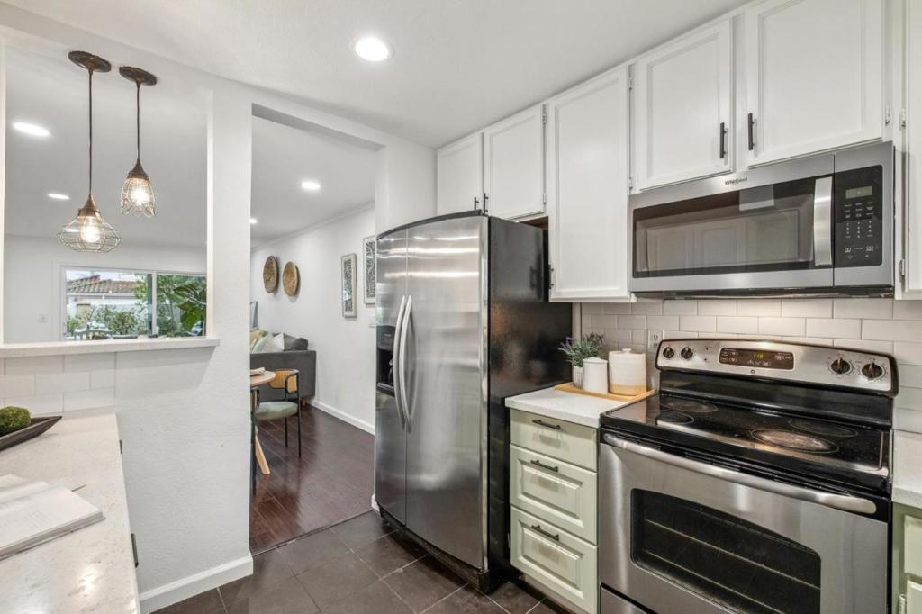 Welcome to this spacious and beautifully refreshed Sunnyvale townhome, ideally located within the highly sought-after Cupertino school district. Featuring an oversized living area with soaring ceilings and abundant natural light, this home feels open, bright, and inviting from the moment you step inside. The thoughtfully designed layout includes two generous suites, offering comfort and privacyperfect for families, guests, or a work-from-home setup. Freshly painted interiors and newly updated cabinetry provide a crisp, modern feel, while stainless steel appliances and sleek quartz countertops elevate the kitchen with contemporary style. Step outside to your private backyard spaceideal for outdoor entertaining, weekend barbecues, or simply relaxing in the California sunshine. Situated in one of Sunnyvales most desirable locations, youre just minutes from downtown, major freeways, shopping, dining, work, and award-winning schools. With a low HOA and unbeatable convenience, this is an opportunity you dont want to miss.