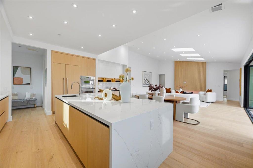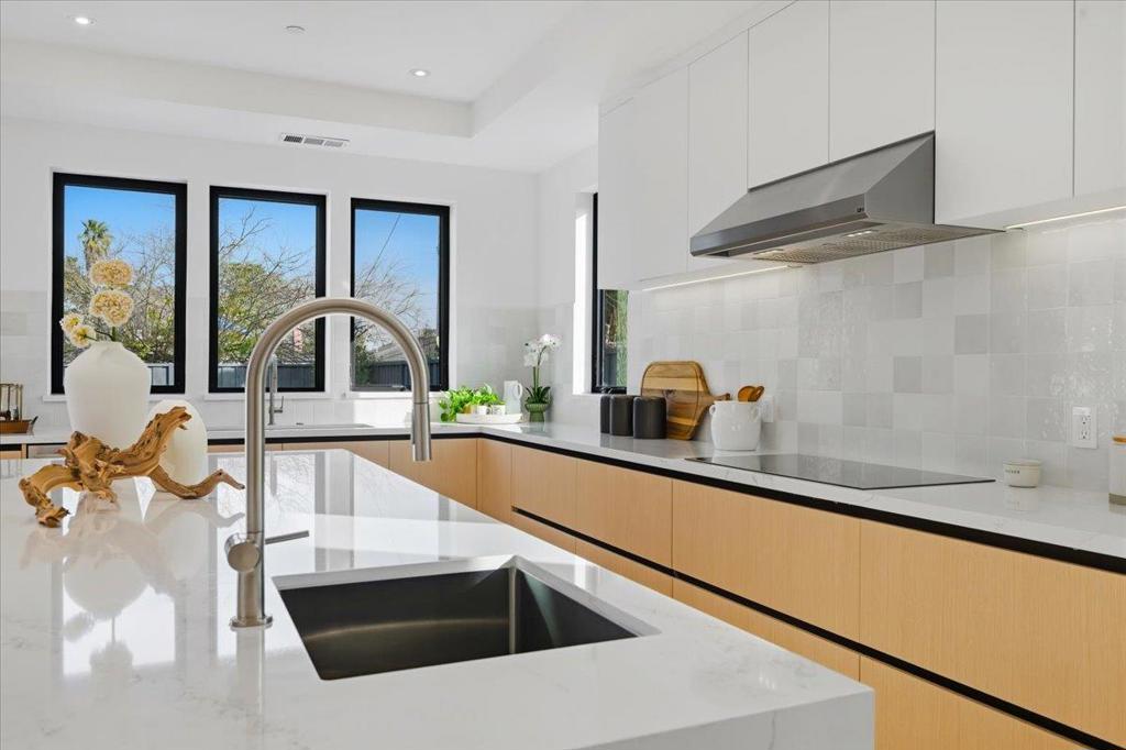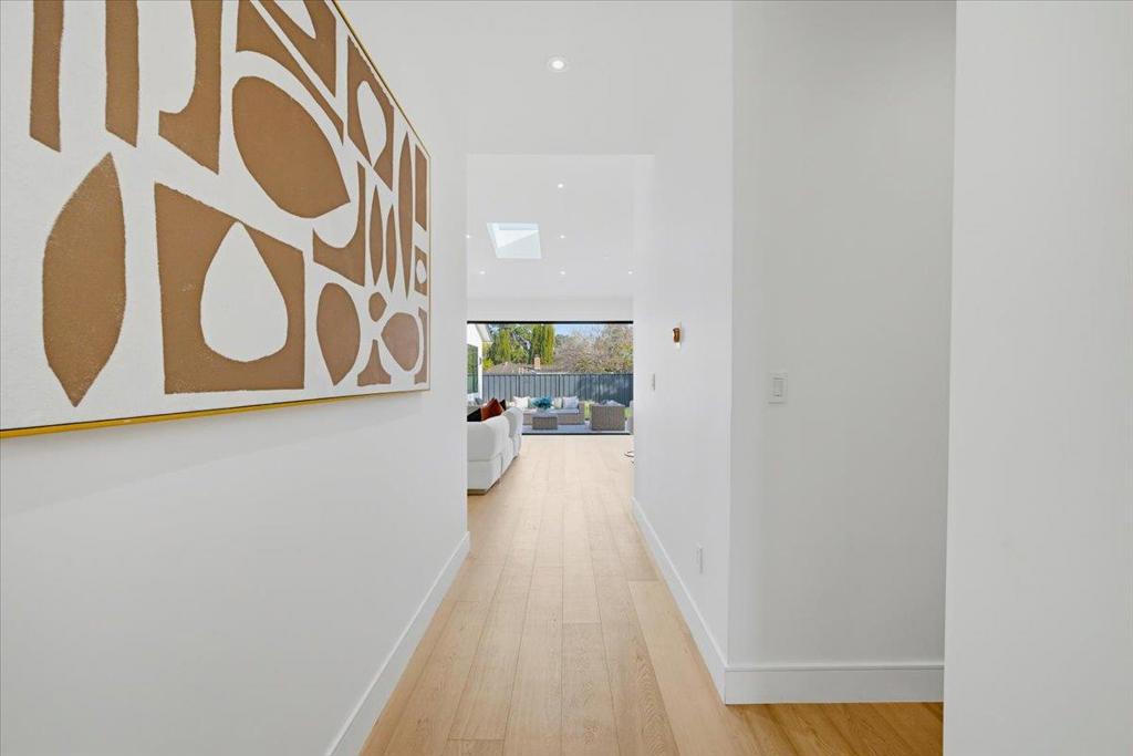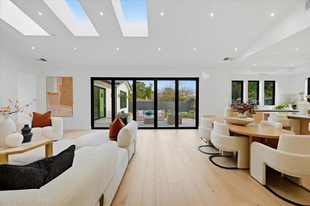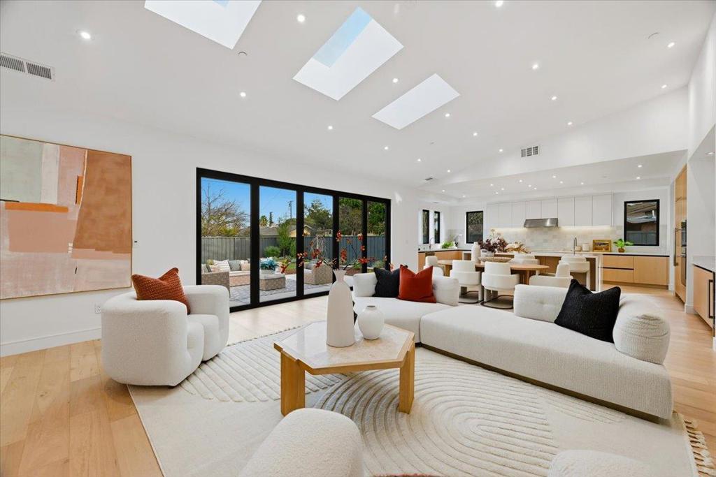 Striking modern custom home in one of Sunnyvales most desirable neighborhoods. This fully permitted custom home offers 5 bedrooms, 4.5 bathrooms, and 3,167 sq ft on a nearly 10,000 sq ft lot, rebuilt entirely with new foundation, roof, systems, and finishes throughout, including an owned solar panel system designed to power the entire property. Highlights include a bright open layout with vaulted ceilings and skylights, a La Cantina folding door for seamless indoor-outdoor living, and a chef’s kitchen featuring high-end Thermador appliances, European cabinetry, and a built-in refrigerator and a wine cooler. Premium features continue with white oak engineered flooring, Porcelanosa designer tilework, Marvin windows, and a spa-like primary suite with backyard access, plus three private guest suites. The front and backyard are thoughtfully landscaped in a garden-style setting, ideal for both relaxation and entertaining, complemented by a high-efficiency Bryant heat pump system. An exceptional opportunity combining modern design, generous lot size, and a prime Sunnyvale location.