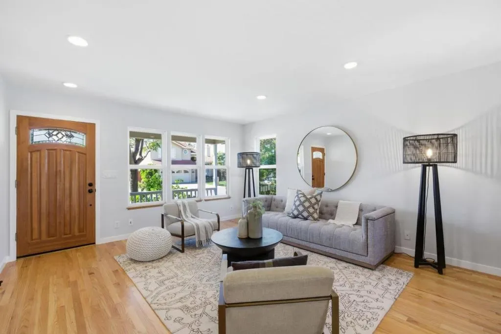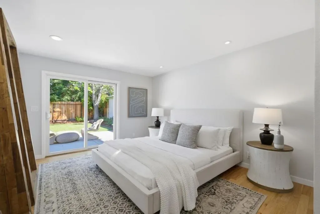 Welcome to 1346 Selo Drive, a beautifully maintained single-story home in the heart of Sunnyvale. This 3-bedroom, 2-bath, 1,722 sqft residence offers inviting curb appeal with refreshed landscaping, mature trees, a welcoming walkway, front porch, and a striking red door that creates a warm, lasting first impression. Inside, enjoy a freshly painted interior, abundant natural light, and gleaming hardwood floors. The spacious living room offers flexibility for both everyday living and dining. The kitchen is thoughtfully designed with wood shaker cabinetry, granite countertops, stainless steel appliances including a gas range, and a breakfast counter ideal for casual dining or entertaining. Step down into the comfortable family room, featuring a fireplace insert and direct access to the expansive backyard. The home includes three well-sized bedrooms, highlighted by an oversized primary suite with ample storage and a dressing area, along with two updated bathrooms and a separate laundry room. The backyard is perfect for relaxing or gathering, offering both patio and lawn space, plus a detached 2-car garage. Additional features include Cat5 wiring, an EV charger, and a water softener. Ideally located near Apple’s campus, Las Palmas Park, top-rated schools, and major commuter routes.