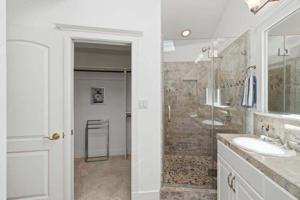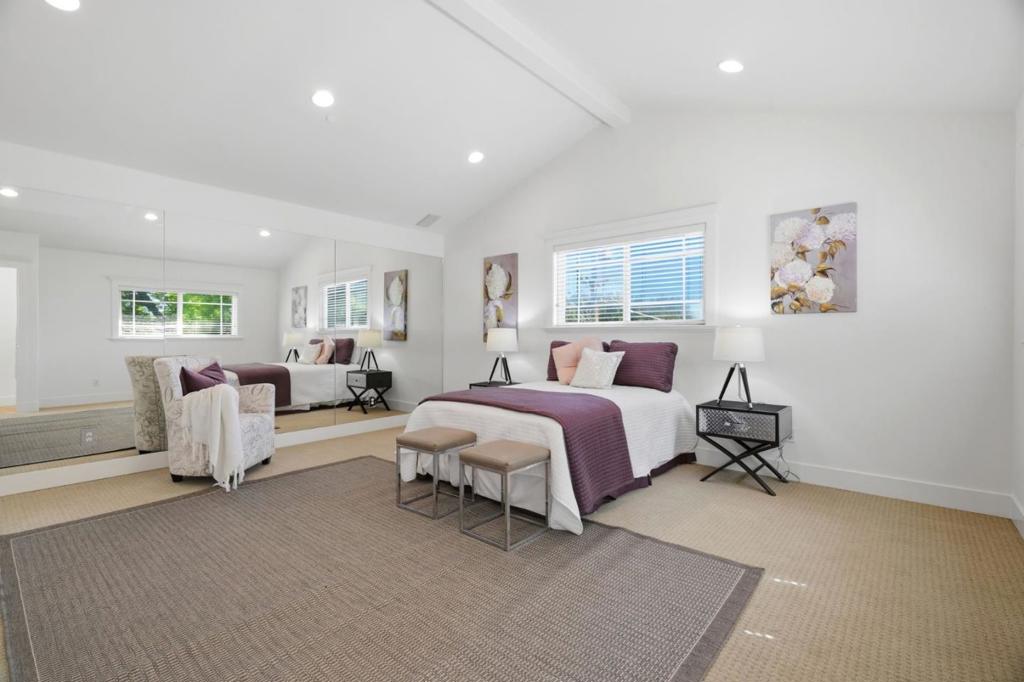 STYLISH EXPANSION ON PRIVATE CUL-DE-SAC | Masterfully updated and expanded by local builder Jon Wolverton for himself and his family, this home on a serene cul-de-sac in one of Sunnyvale’s most beloved neighborhoods perfectly blends Craftsman character and modern sophistication, with open interiors adjacent to alluring gardens providing enchanting indoor-outdoor living at its finest. Two sets of gathering areas unfold from a skylit island kitchen, customized with cherry cabinetry, pull-out storage, and premium appliances, including a Thermador® professional-grade gas range with pot-filler. The expansive primary suite boasts a sky-lit bath, sitting room, walk-in closet, and private entry, while an office and flexible fourth bedroom/gym /flex space are tucked upstairs. Outdoor retreats are appointed with drip irrigation, fruit trees, and slate patios & footpaths with arbor and wisteria trellis. Highlights include an oversized two-car garage, surround sound, wide-plank hardwood floors, central cooling, and casement picture windows. Situated between Main Street Cupertino and Downtown Sunnyvale, this location is central to shopping, dining, entertainment, tech centers, and excellent Cupertino schools including West Valley Elementary, Cupertino Middle, and Homestead High.