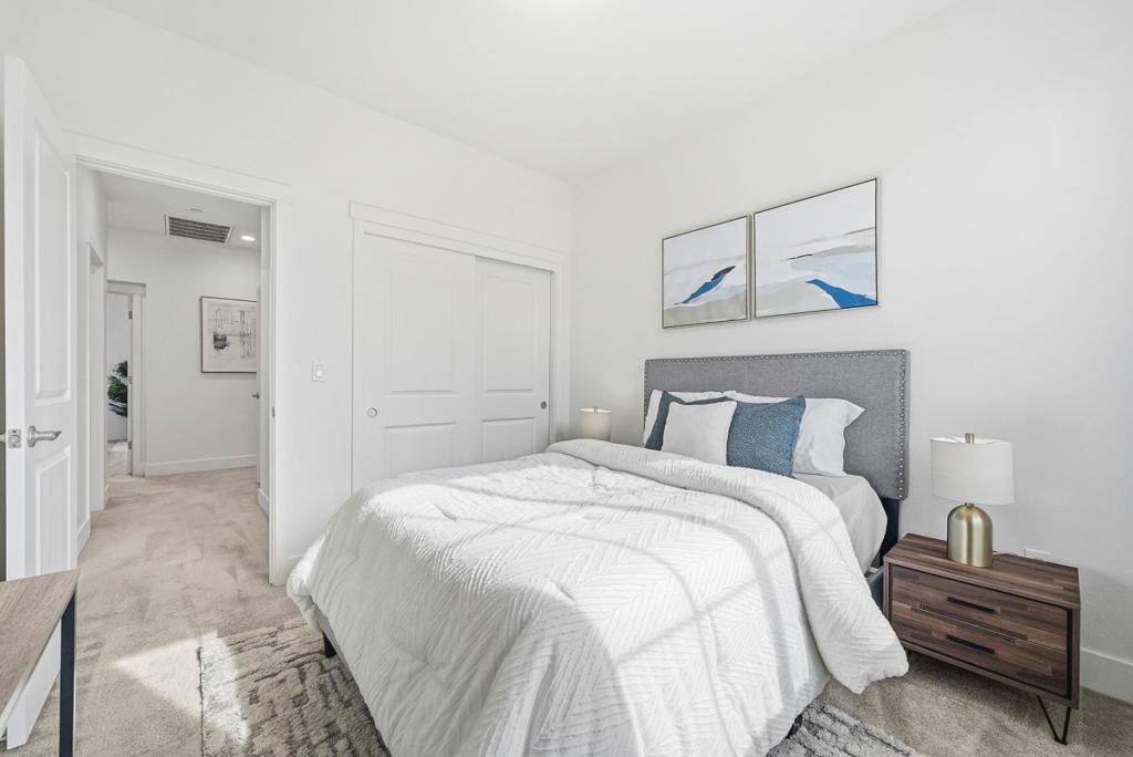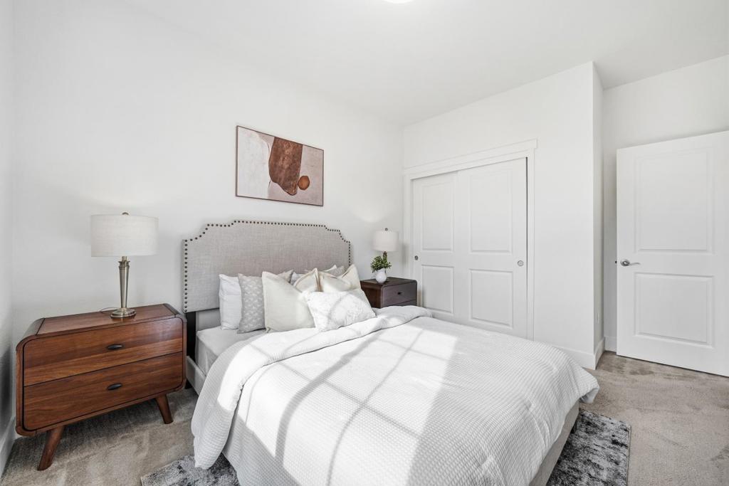 Welcome to this gorgeous eight-year-old townhome located in the highly sought-after Evelyn Place community. This high-quality residence offers four bedrooms and three-and-a-half bathrooms, including a guest bedroom and full bath conveniently located on the first floor. An open-concept floor plan seamlessly connects the spacious kitchen, dining area, and living room perfect for gatherings of all kinds. The home enjoys added privacy with no rear neighbors and lovely courtyard views. The stunning primary suite is filled with natural light and features a generous bathroom with dual vanities, a stall shower, and a walk-in closet. Two additional bedrooms, another full bathroom, and a laundry room complete the peaceful upstairs living area. Additional highlights include upgraded wood flooring, multi-zone heating and air conditioning, and access to a community BBQ area. Ideally located near parks, restaurants, shopping, and top recreational and entertainment venues, this beautiful home offers both comfort and convenience. A must-seecome enjoy the many features and lifestyle this fantastic property has to offer!