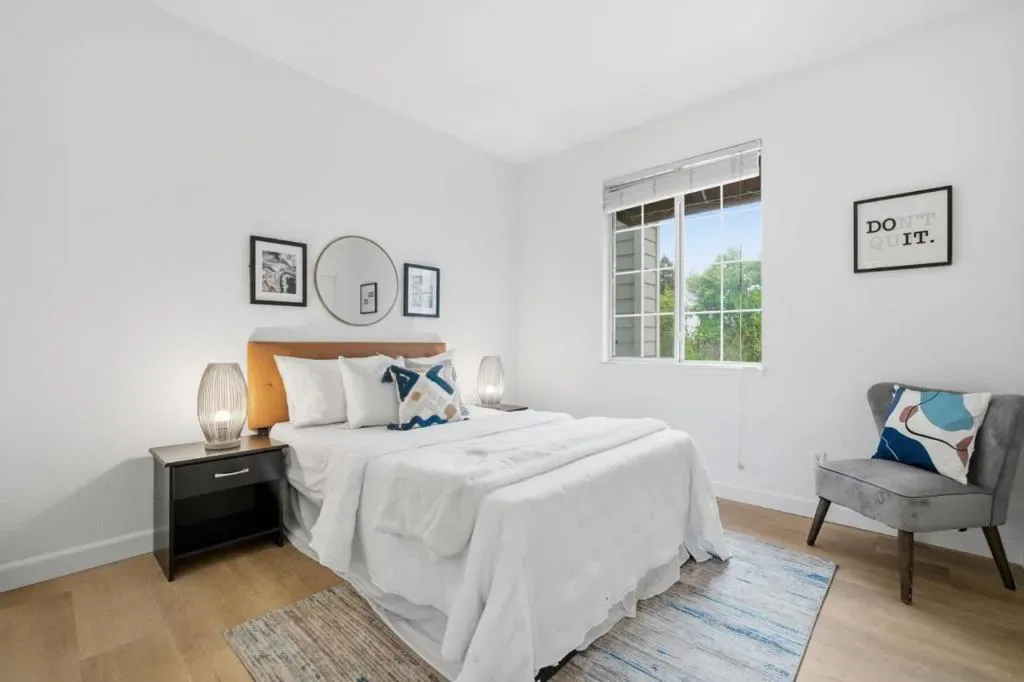 Located in one of Sunnyvales most desirable and convenient neighborhoods, this attractive end-unit condominium offers comfortable, thoughtfully designed living just minutes from Downtown Sunnyvale, Caltrain, and major technology campuses. Natural light fills the open floor plan, creating a bright and inviting atmosphere throughout. The spacious layout is designed with privacy in mind, with bedrooms positioned on opposite sides of the unit, ideal for guests, roommates, or a dedicated home office. The primary suite includes dual closets and an updated en-suite bathroom with double sinks, offering both functionality and comfort. The living room features a wood-burning fireplace and opens to a private balcony, providing a seamless indoor-outdoor connection. Additional features include in-unit laundry, secured underground parking with dedicated storage, and ample guest parking. The well-maintained community offers a pool, spa, clubhouse, landscaped grounds, and pet-friendly amenities. With convenient access to Highways 101, 237, and 85, as well as Lawrence and Central Expressways, and close proximity to major employers including Apple, Google, LinkedIn, and NVIDIA, this home presents an exceptional opportunity in the heart of Silicon Valley.