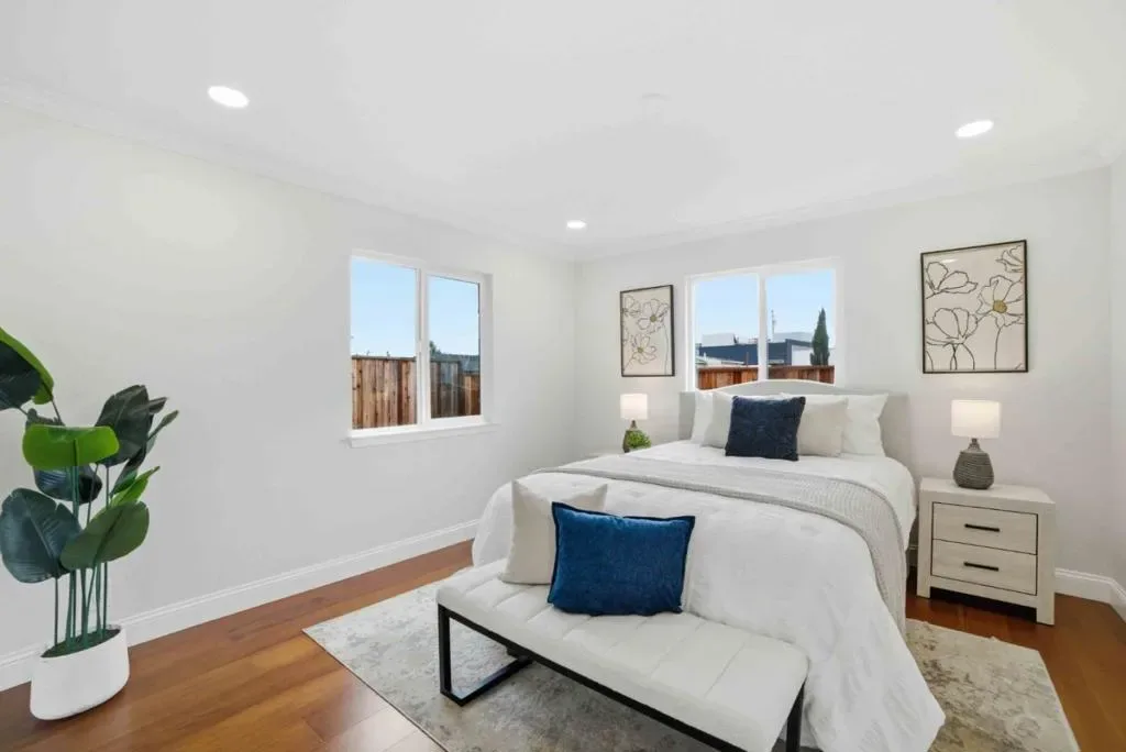 Completely remodeled down to the studs in 2025, this stunning home offers the feel and quality of brand-new construction. Every detail has been thoughtfully upgraded, including a new roof, electrical and plumbing systems, earthquake retrofit, fresh stucco, modern kitchen, beautifully updated bathrooms, new flooring, and much more. Situated on a large lot, this spacious 5-bedroom, 3-bathroom home provides abundant indoor and outdoor space perfect for comfortable living and entertaining. The main level features 4 bedrooms and 2 bathrooms, while the upstairs boasts a huge primary suite with serene views of the lush green backyard. The expansive garden includes a variety of fruit trees, creating a peaceful and private outdoor retreat. Ideally located in the heart of Sunnyvale, this home offers convenient access to major tech companies including Google, Amazon, Apple, and NVIDIAmaking it a perfect choice for Silicon Valley living.