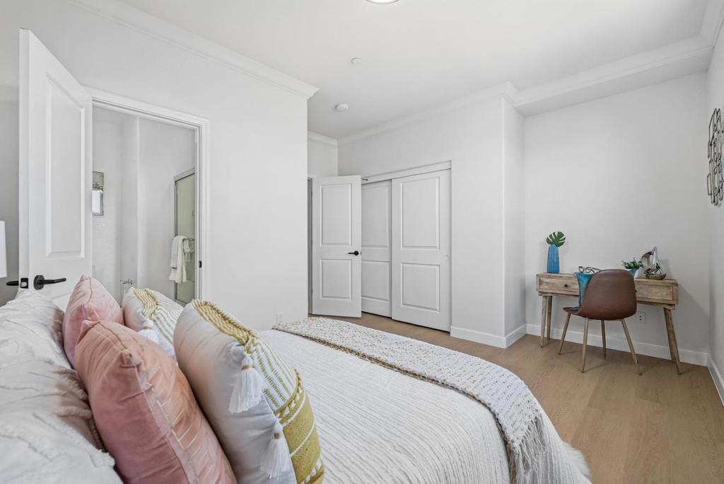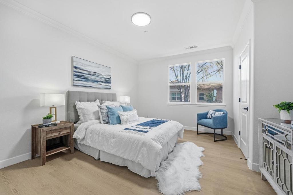 Absolutely beautiful! Chic & stylish, recently remodeled three-story 1645 sqft townhouse built in 2011. Prime location! Just 10-15 minutes drive to major tech campuses. 5 minutes to Costco and Whole Foods. Easy access to Lawrence Expressway and Hwy 101. Move-in ready! Fresh modern feel with newly painted walls, premium SPC flooring, and recessed lighting throughout. Smart tri-level layout maximizes privacy with a 1st-floor private suite perfect for guests or home office. Gorgeous open-concept living room and kitchen ideal for family activities. Top floor features two additional bedrooms with en-suite bathrooms. Updated bathrooms with new mirrors and toilets. Quiet, friendly community with lush landscaping and excellent amenities including gym, cinema room, and ample guest parking. HOA fee covers water, sewage, and trash. This can be your dream home!