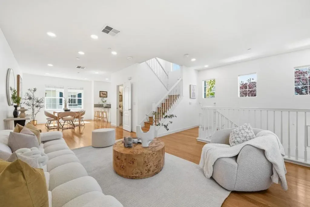 Welcome to 581 Monterey Terrace, a bright, move-in ready end-unit home in the heart of Sunnyvale. North-facing and bathed in natural light, it is one of the few homes with open green space out front, creating privacy and a rare connection to nature in this Silicon Valley townhome community. Walk or bike to nearby tech campuses like Google, Meta, Amazon, Apple, LinkedIn, Walmart, Juniper Networks and Alibaba, with private corporate shuttles serving the area. The home enjoys a prime corner position, offering abundant light and an open, airy atmosphere. A versatile bonus space on the lower level ideal for a home office, gym, creative studio or home theater is not included in the recorded square footage, offering flexibility and added value for todays modern lifestyle. The prime central location offers unparalleled convenience: minutes from major freeways, San Jose International Airport, Levis Stadium, Great America, and the scenic Baylands Park, offering abundant options for dining, sports, and outdoor recreation. Steps from Arwa Yemeni Coffee and close to Fair Oaks Light Rail station, this location blends vibrant urban energy with everyday ease. A rare opportunity to own a bright, functional, and well-located home in one of Silicon Valleys most connected communities.