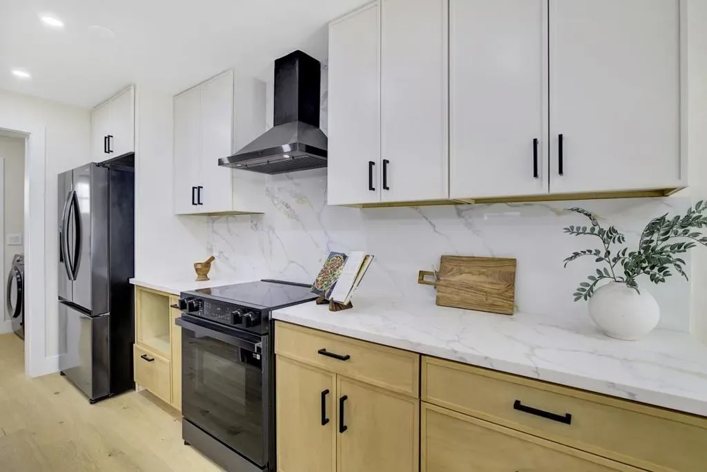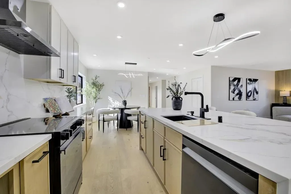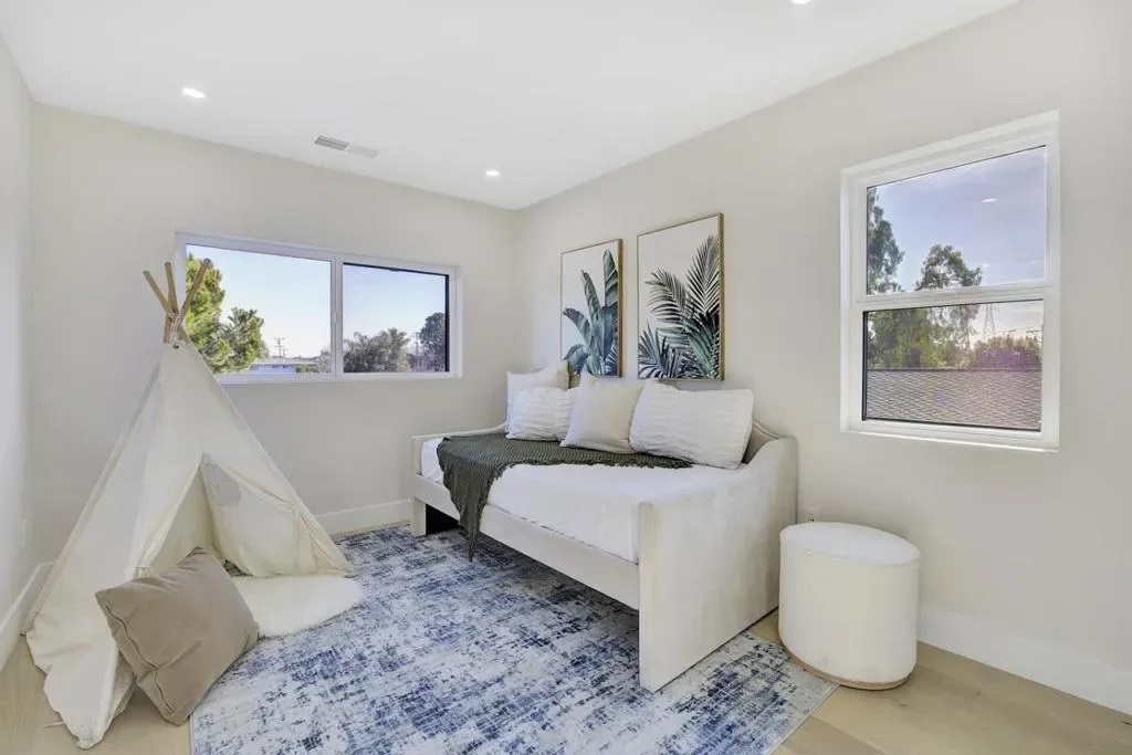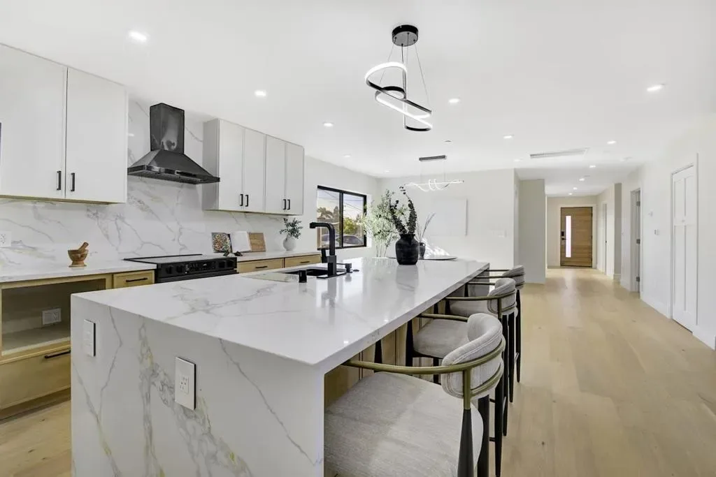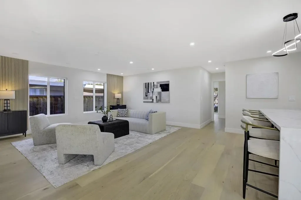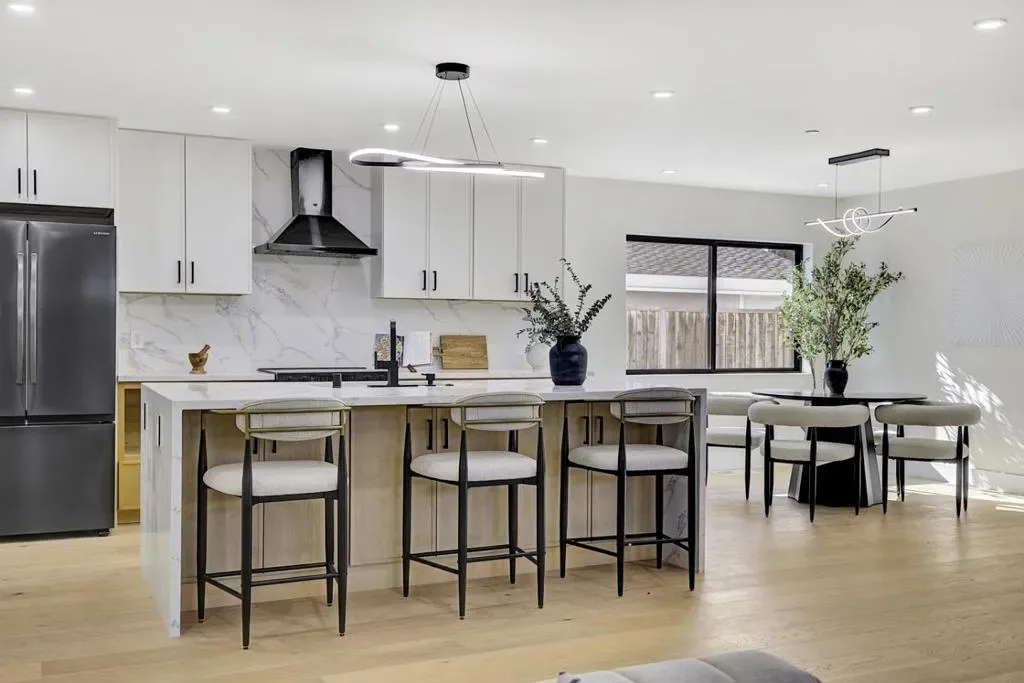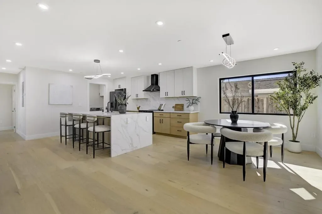 Stunning brand-new construction completed in 2026, thoughtfully built from the ground up with exceptional craftsmanship and modern design. This expansive home offers 6 bedrooms and 5 bathrooms, featuring soaring 12-foot ceilings living room, sleek black-framed windows, and engineered hardwood flooring throughout. The open-concept layout showcases a spacious family room seamlessly connected to the gourmet kitchen, highlighted by a massive waterfall island, quartz countertops, stylish white oak cabinetry, abundant storage, and high-end stainless steel appliancesperfect for both daily living and entertaining. The main level includes a luxurious primary suite with backyard access, a large walk-in closet, and a spa-inspired bathroom with soaking tub and curbless shower, along with two additional bedrooms and two full bathrooms. Upstairs features a private junior suite, two more bedrooms, and another full bathroom, offering flexible living options. A dedicated laundry room with cabinetry adds convenience. Completing this exceptional property is a detached two-car garage and a well-designed floor plan that blends modern elegance, comfort, and functionality for todays lifestyle.