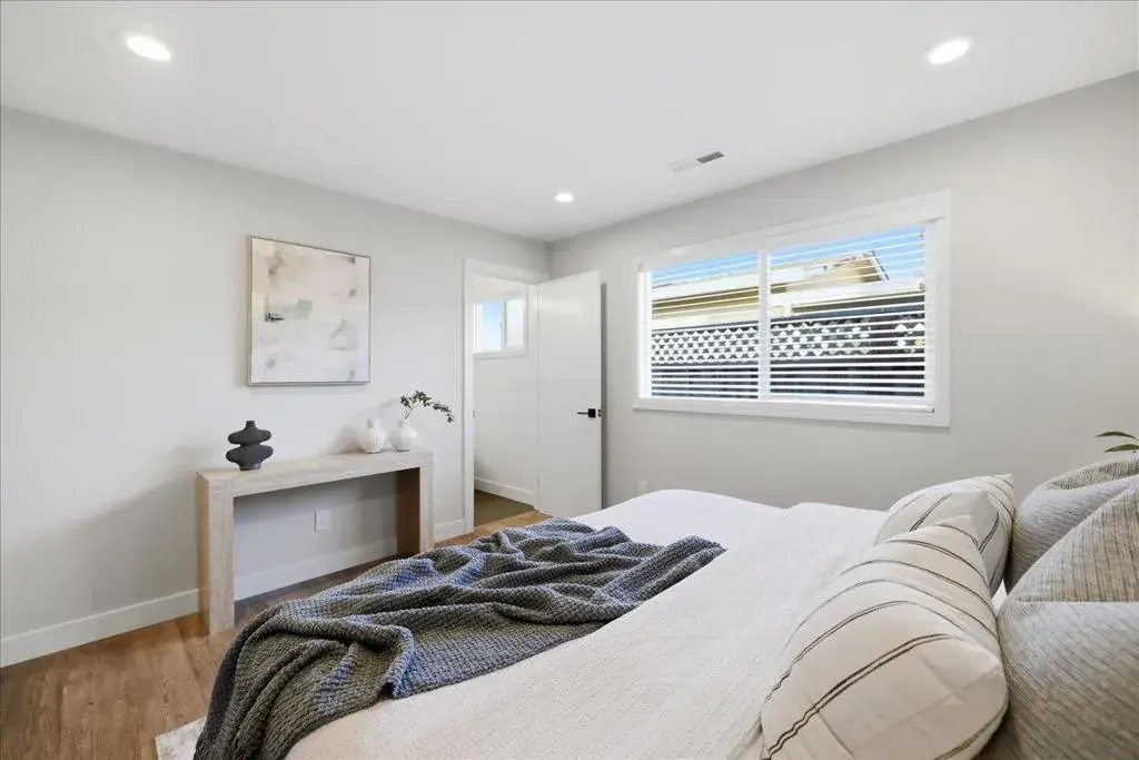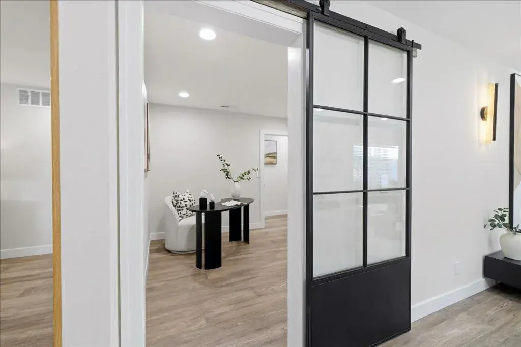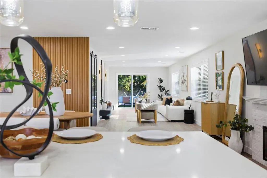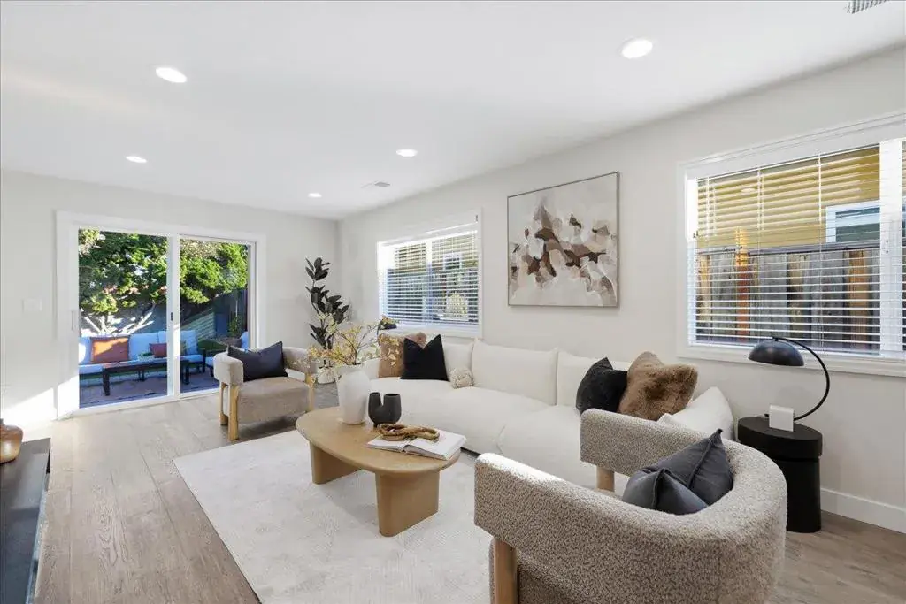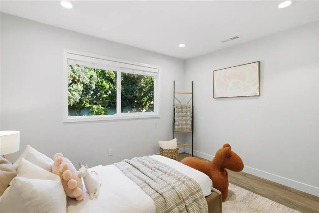 Move-in ready and beautifully remodeled home is located in the desirable Sunnyvale neighborhoods. Featuring 3 bedrooms and 2 bathrooms, plus an office, it is designed for modern comfort with an open-concept layout and abundant natural light. The modern remodeled kitchen features a gourmet kitchen with a large island, quartz countertops, sleek cabinetry, and high-end SS appliances. The dining area boasts a stylish accent wall, while the bright and private living room offers a seamless flow for entertaining. The spacious primary suite includes a designer accent wall and a luxurious en-suite bath with double vanities and a spacious walk-in shower. Two additional bedrooms are bright and versatile. A separate home office provides the perfect space for remote work. The expansive backyard features paver flooring, mature trees, and ample privacy. Home upgrades include an upgraded electrical panel, updated plumbing, engineered hardwood flooring, smart thermostat, recessed lighting, double-pane windows and insulated garage with epoxy flooring. Located near major tech campuses like Google, Meta and Amazon, the home is within walking distance of parks, playgrounds, and downtown Sunnyvale shopping, dining, and Caltrain. With modern updates and thoughtful design, this home is a must-see!