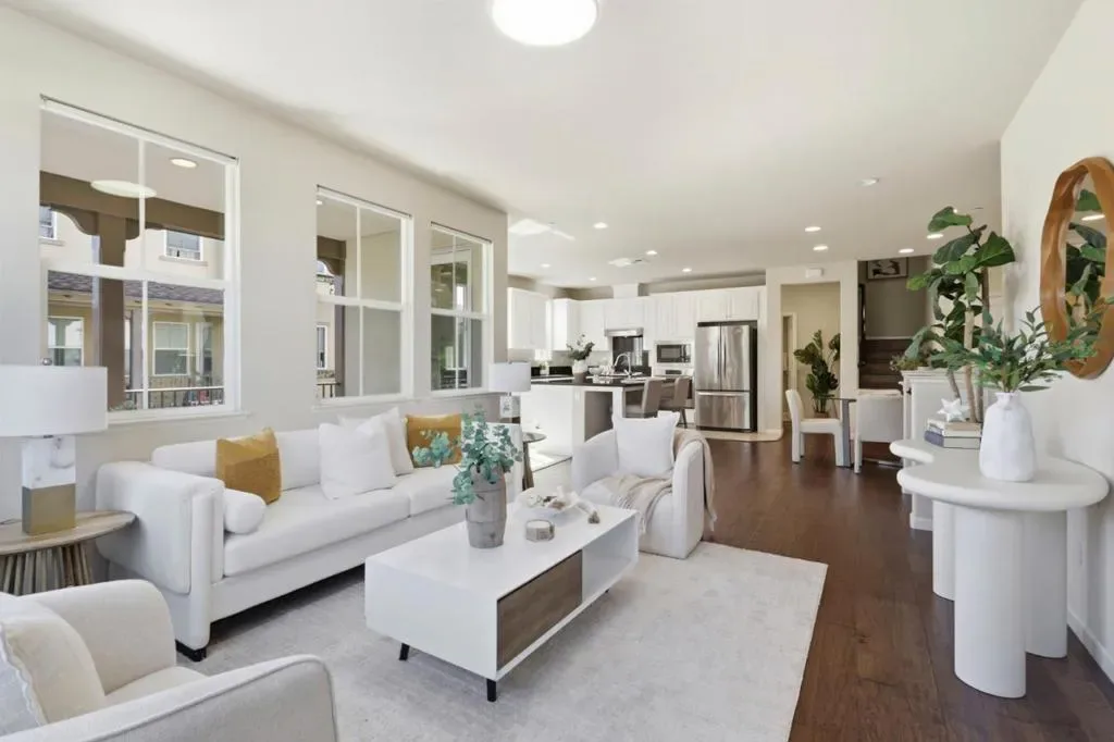 Bright and spacious end-unit townhouse in desirable Las Palmas! Built in 2014 by Summerhill Homes, this 3BD/2.5BA tri-level home offers ~1,851 sq ft of light-filled living space in a quiet, private location. Open floor plan with balcony, featuring a gourmet kitchen with granite countertops, stainless steel appliances, large island with seating, and walk-in pantry. Engineered wood floors throughout and separate laundry room. Elegant primary suite with walk-in closet and dual-sink vanity; custom closet organizers in all bedrooms. Dual-zone A/C & heating. Community amenities include gym, private park, BBQ area, and clubhouse. Resident-only access gate near unit. Prime locationwalking distance to shopping, dining, parks, tennis center, and library; close to downtown Sunnyvale and Sunnyvale Caltrain Station. Easy commute to major tech employers. Top-rated Cumberland Elementary School (buyer to verify).