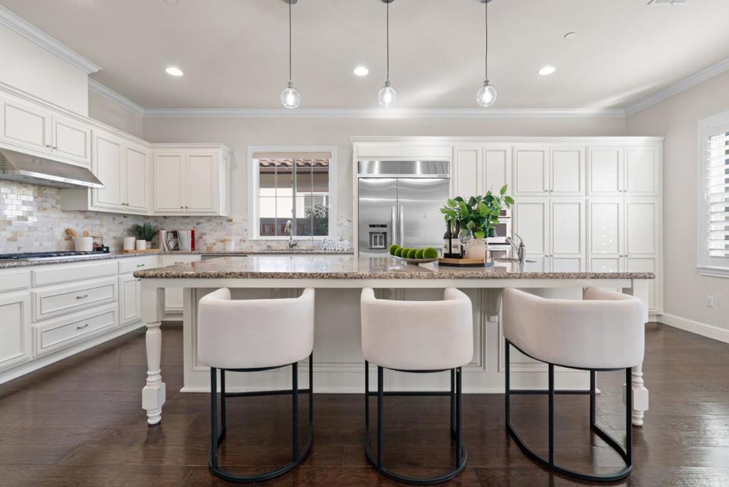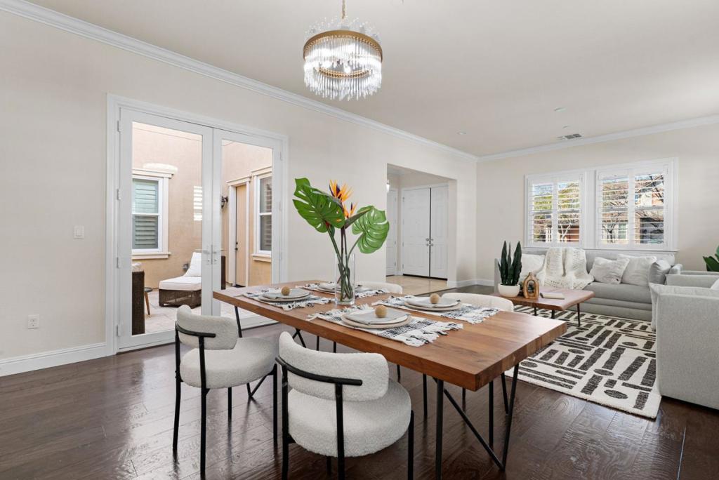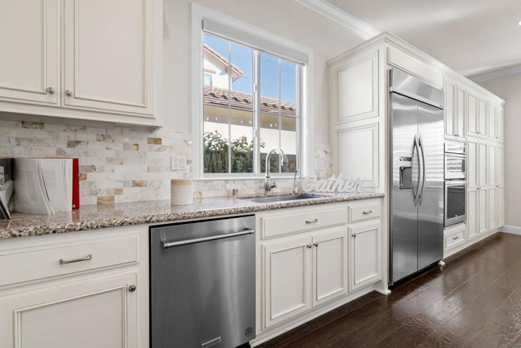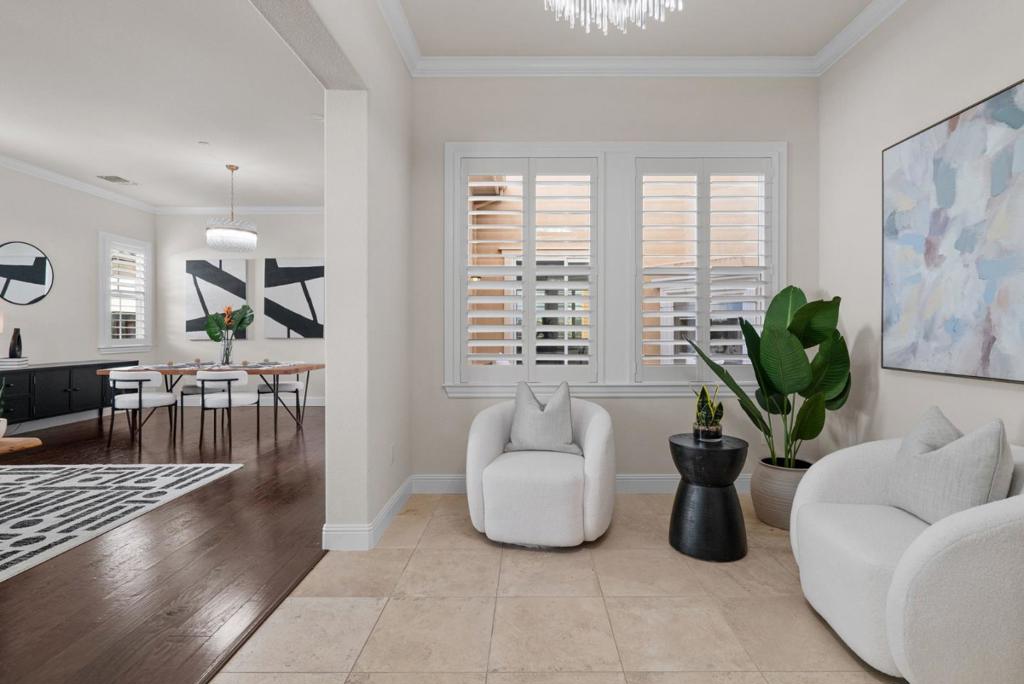 Welcome to 742 Torreya Ave, built in 2013 by Toll Brothers, offering 4 beds, 2.5 baths, and more than 3,100 SqFt on a 6,000 SqFt lot, with high ceilings and abundant natural light. Ideally positioned near Downtown Sunnyvale, highly rated public schools and acclaimed private campuses, and major employers such as Apple, Google, and NVIDIA, along with neighborhood favorites like Corn Palace Park and nearby Costco Wholesale. A bright tile entry opens to formal living and dining rooms with hardwood floors, crown molding, and a statement chandelier. A sunlit atrium with a gas fireplace leads into the inviting great room. The chefs kitchen features a large island, granite countertops, white shaker cabinetry, marble subway mosaic backsplash, KitchenAid appliances, built-in speakers, and backyard access. Upstairs, the primary suite offers plantation shutters and a spa-inspired bath with soaking tub, glass-enclosed shower, dual vanities, and two walk-in closets, while three additional bedrooms provide flexible use. The backyard is designed for entertaining with pavers, a putting green, covered patio, and outdoor kitchen. Additional highlights include central HVAC, tile roof, and an EV charger. Nearby private school options include Stratford School, Helios School, and The Harker School.
