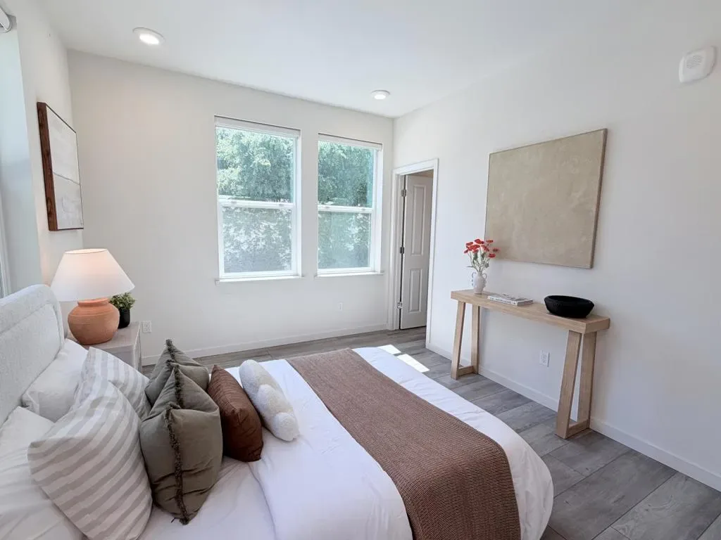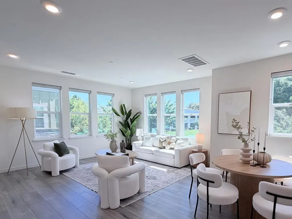 Welcome to this beautifully upgraded end-unit townhouse in the highly desirable Vale community in Sunnyvale. Nestled in a quiet and private location, offers serene surroundings with lovely open views and abundant natural light throughout. Featuring a spacious open floor plan, designed for modern living and effortless entertaining. The gourmet kitchen is equipped with upgraded high-end appliances, sleek cabinetry, and generous counter spaceperfect for both everyday use and hosting guests. With 4 bedrooms and 3.5 bathrooms, provides flexibility for families, guests, or a home office setup. The thoughtful layout ensures comfort and privacy across multiple levels. Enjoy the convenience of a fully integrated smart home system, including a Google Nest setup, bespoke motorized roller blinds, along with high-speed internet readiness to meet todays connected lifestyle. Additional premium features include a tankless water heater for energy efficiency and continuous hot water. This rare corner-unit offers enhanced privacy, extra windows, and a bright, airy ambiance. Located in a peaceful yet central Sunnyvale neighborhood, you’ll be close to parks, shopping and major tech employers. A perfect blend of style, comfort, and modern convenience.