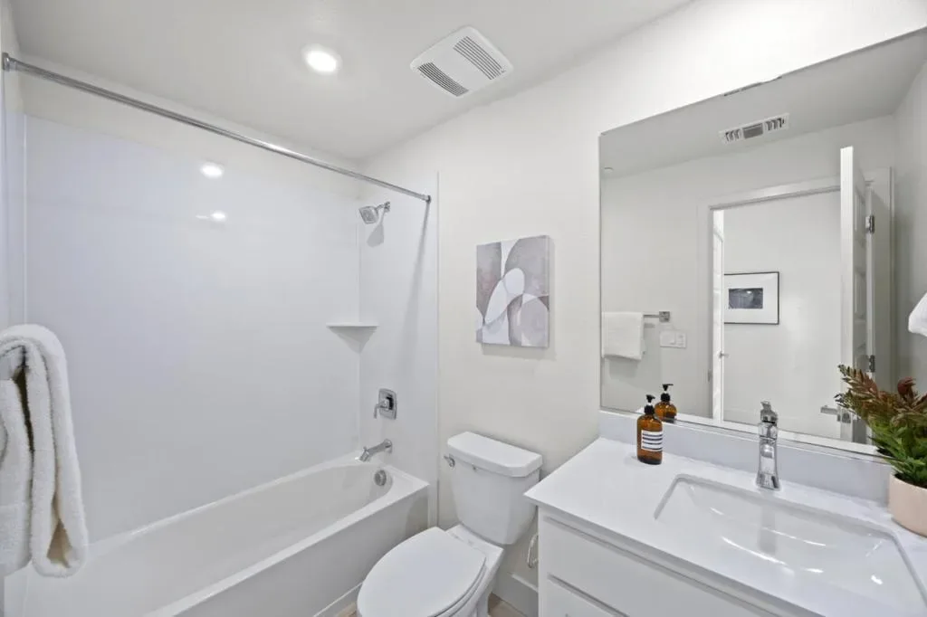 Bright, new, move-in ready end-unit townhome in the sought-after Lavender community of Sunnyvale! All living areas on one level are filled with sunlight, flowing seamlessly from the living and dining areas to the kitchen with a walk-in pantry. The spacious primary bedroom features a large bathroom, and a flexible bedroom with a Murphy bed provides comfort for guests or doubles as an office. Additional features include an owned solar system, a side-by-side two-car garage, and an RO drinking water system. Ideally located near major tech companies, groceries and restaurants, with easy access to highways. In a friendly neighborhood, this home delivers modern Silicon Valley living with style and energy!
