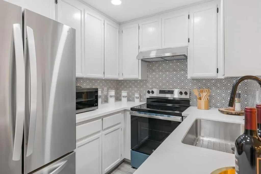 Welcome to this newly remodeled 2 bedroom home, nestled in a tranquil, park-like community in the heart of Silicon Valley. Homestead High School. Surrounded by lush redwoods and greenery, this community provides a serene and welcoming environment for families. Newly remodeled kitchen with quartz counters, stainless steel appliances and sink. Hardwood floors, recessed lights and brand new interior paint. Two spacious bedrooms feature large closets. Updated bathroom with brand new counters, sink and fixtures, tiles on the floor and walls around tub/shower combo. Inside laundry with washer and dryer provides the daily convenience. 2 car garage. Enjoy the community pool & spa, BBQ area, car wash station and open greenbelts. The HOA covers water, sewer, garbage. Located at a central location and close to parks, Sunnyvale DOWNTOWN, fine dining and many tech companies (Apple, Google, Linked-In, MS, Amazon etc.) Easy access to highway 101, 237, Central Expy and Caltrain stations. Award-winning Sunnyvale schools Homestead High. This home offers a great access to major commuter routes like 101, 237, 85, Cal-Train and Central Expressway.