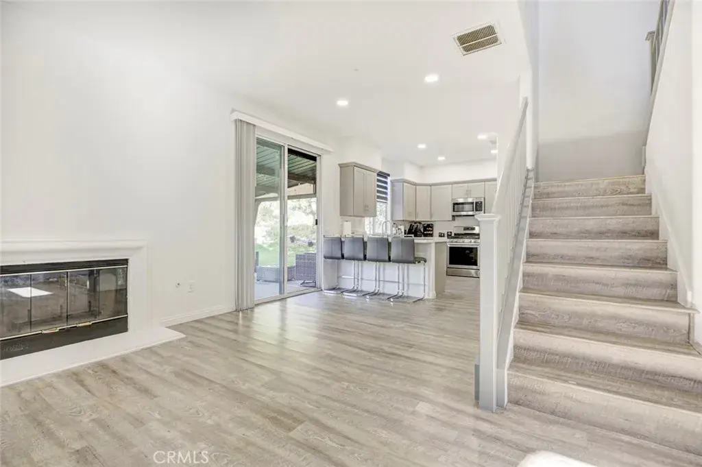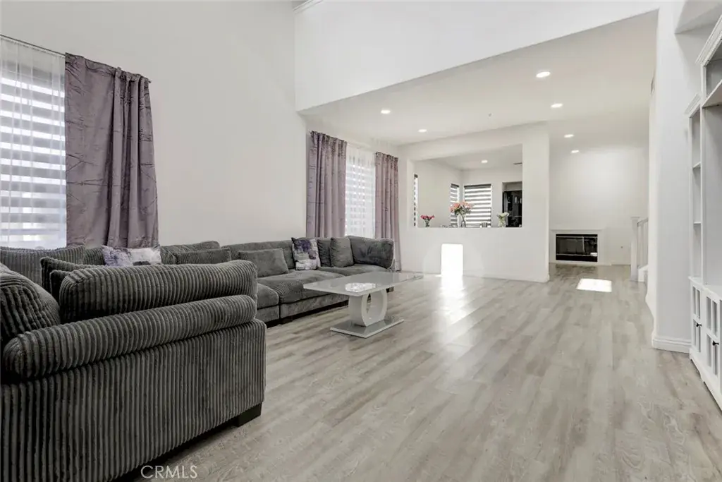 Beautiful two-story, move-in-ready home offering two-car parking and modern upgrades throughout. Enjoy laminate flooring, recessed lighting, soaring ceilings, and an abundance of natural light from oversized windows. The home features central A/C and heating, a cozy fireplace in the family room, and custom window coverings.