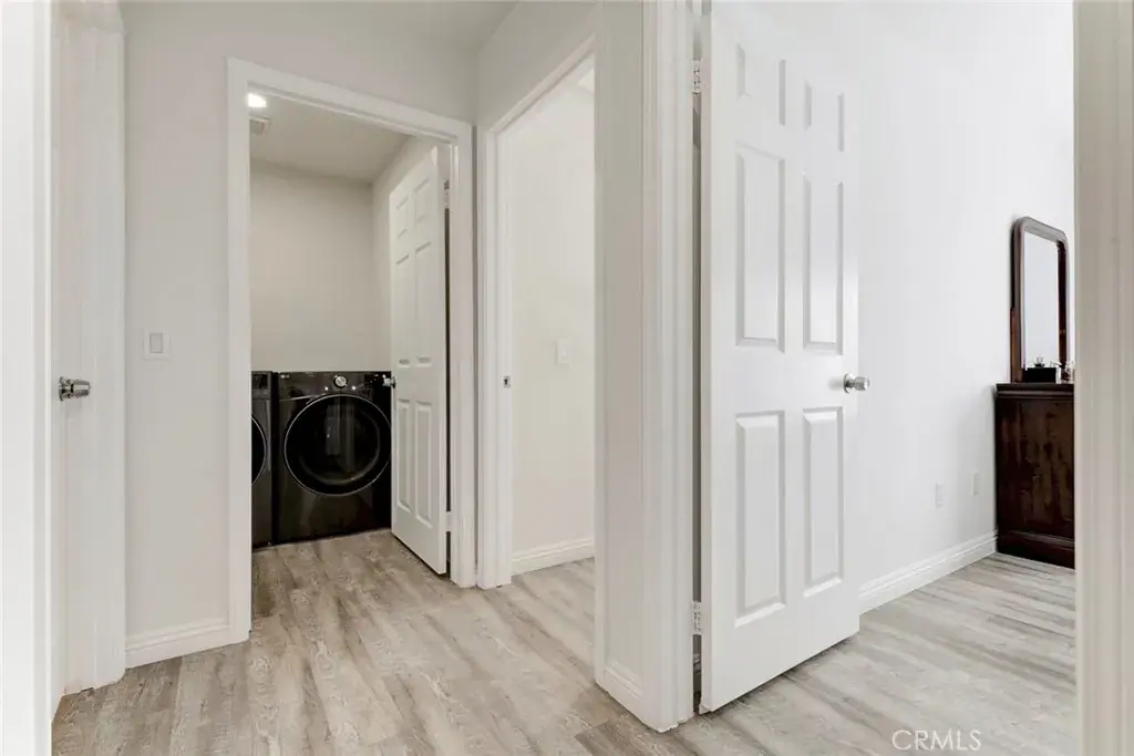 The spacious primary suite includes a walk-in closet and a private ensuite bathroom with a stand-up shower and jacuzzi tub. Convenient second-floor laundry room adds to the home’s functionality.