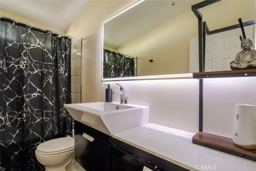 Both bedrooms are generously sized, including a primary suite with its own private bathroom. The bathrooms have been refreshed with contemporary vanities and stylish fixtures, creating a clean and inviting atmosphere.