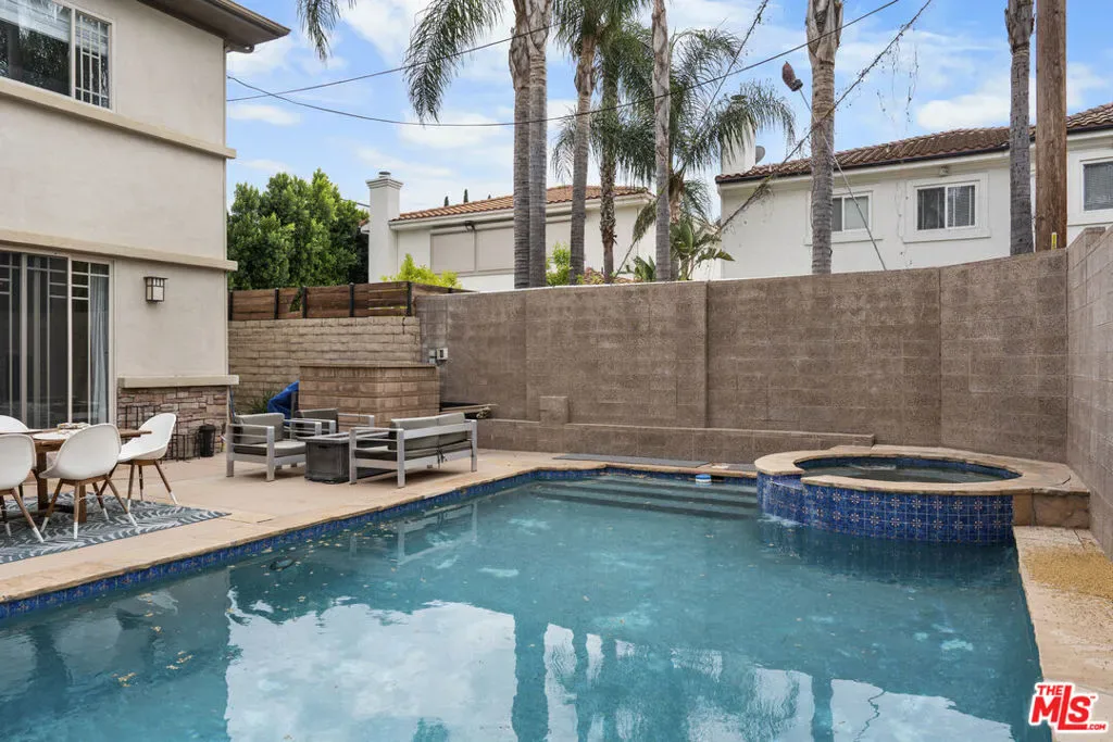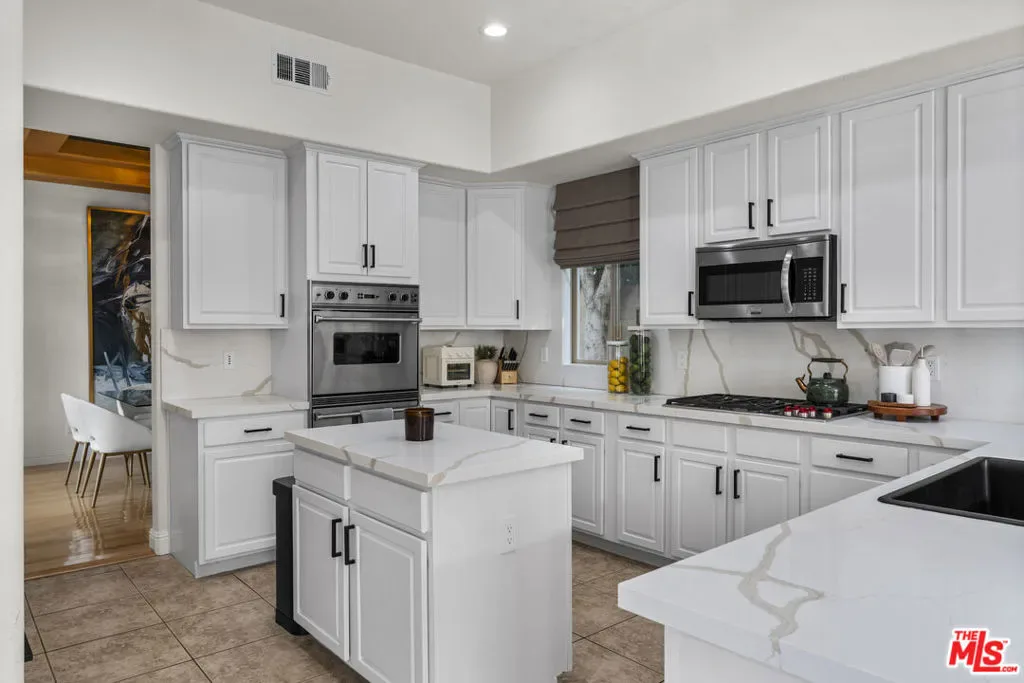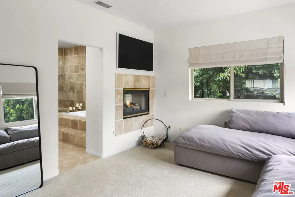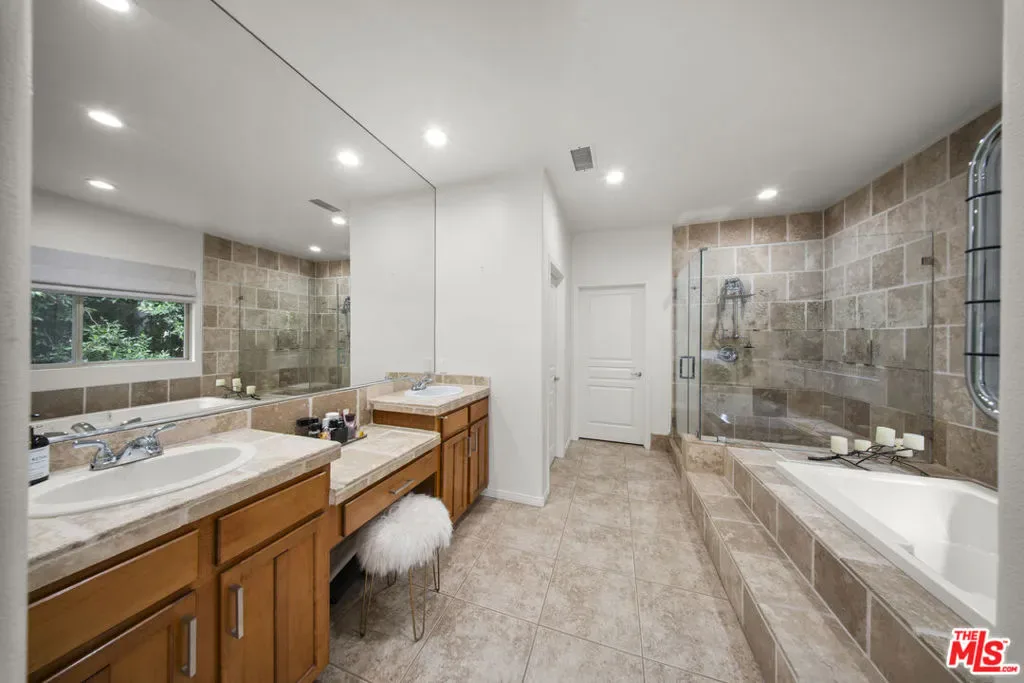 Set behind gates on a quiet private street south of Ventura Boulevard, 18330 Hanan Ct delivers the ideal blend of luxury, privacy, and everyday livability in one of Tarzana’s most sought-after enclaves. This striking residence welcomes you with soaring double-story ceilings that open to an impressive formal living room, featuring a fireplace and overlooks lush greenery through grand windows. Designed for both entertaining and daily comfort, the home flows seamlessly into a formal dining room with a recessed ceiling and a generously sized chef’s kitchen complete with rich custom cabinetry, quartz countertops, peninsula seating, and an oversized dining area. The adjoining family room offers a warm fireplace, expansive sliding doors, and direct views of the resort-style pool and backyard, perfect for indoor-outdoor living. The main level includes a powder room and a private en-suite bedroom currently used as a home office. Upstairs, the expansive primary suite is a true retreat, featuring a sitting area and a double-sided fireplace shared with a spa-inspired bath boasting a soaking tub, frameless glass shower, dual vanities, and a dedicated makeup area. Three additional bedrooms, each with en-suite baths, plus a laundry room complete the upper level. Offering timeless character with modern comforts throughout, this exceptional home is tucked within a serene gated community just moments from Tarzana’s premier shopping, dining, and houses of worship.