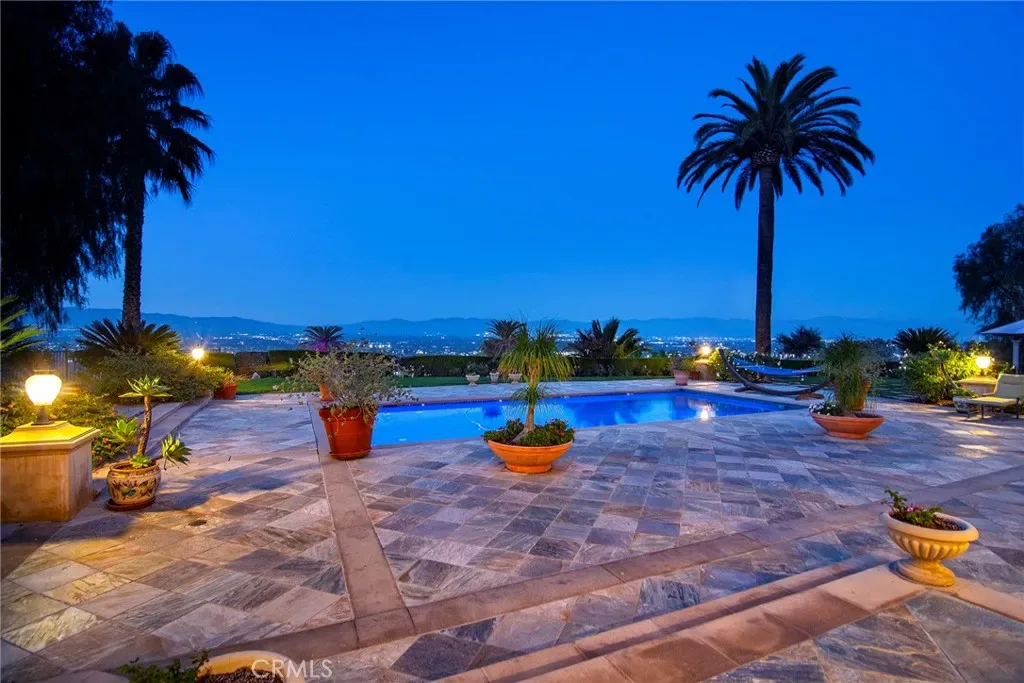 Presenting a magnificent custom Tuscan nestled “South of Blvd” within the tranquil hills of Tarzana. Spellbinding views from the rocky Santa Susana mountains in the northwest corner of the Valley spanning clear across to the east while capturing hypnotic visions of glistening lights, majestic mountains and all the daytime dazzle of the Valley below. Gated entrance at the end of a quiet cul-de-sac leads to this ultra-private nearly 8,400 sq. ft. estate on 1.5 acres designed and crafted by these original owners. Beautiful arches and grand columns entice you to explore more. Inside, a living room with 20 ft. soaring ceilings, family room with fireplace and spacious formal dining all offer large windows to ensure the glorious views are always right by your side. Open & bright kitchen features a large center-island & adjacent breakfast nook with plenty of windows to enable you to devour the sumptuous sites with each and ever meal. Large office, game-room and ensuite further enhance the lower level. Choose the grand curved staircase or the stairs adjoining the kitchen to guide you to the upper level or…if stairs are a strain, an elevator is at your service affording the opportunity to remain for a lifetime. Your double-door entry primary suite provides three prime vantage points to soak in the sights….cozy adjoining reading/relaxation arena, large private balcony and from the comfort of your bed as the last thing you see each night and the first as you arise. Spacious luxurious bath and a massive walk-in closet add to its appeal. Three additional ensuites with balconies and an upper-level family room option are ideal. Outside, these palatial rear grounds offer a sensational sanctuary to indulge in a true southern California lifestyle. With the jaw-dropping panoramic backdrop visible form virtually every inch, the experience is like no other. Enjoy a solar heated pool, soothing spa, barbeque center/dining area and a sprawling grassy area. This is one not to be missed!