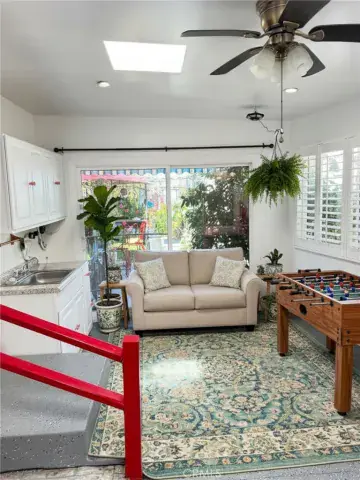 Outdoor furnishings include a BBQ grill, propane fire table, utility sink, remote-controlled patio awning, and even flat-screen TVs are included—because yes, you can have ambiance and game night. The driveway accommodates three vehicles (one covered, two uncovered). Conveniently located near freeways, shopping, dining, and schools, this home offers privacy, comfort, and a lifestyle that feels just a little elevated.