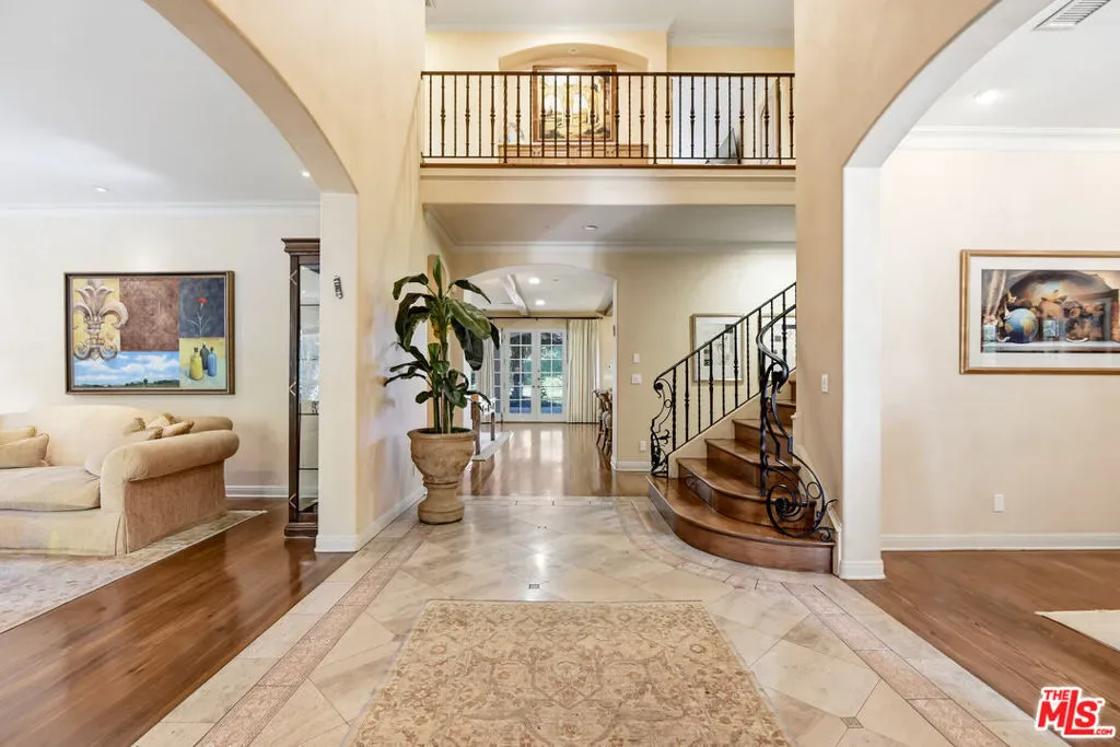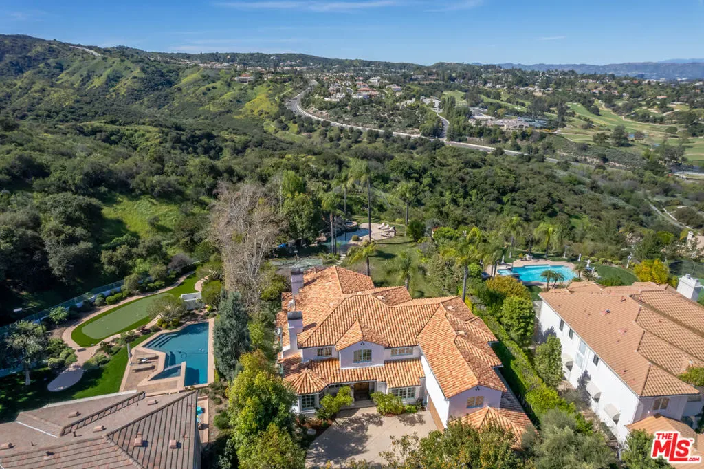 Located in the prestigious 24 hour guard gated community of Silverhawk, this custom Ken Unger designed home sits in far back from the street and offers privacy, views on arguably the most desirable lot in the community. Spanning 6,500 square feet of living space, 7 beds & 6 baths and a back yard that is unmatched with a lit sports court, large grassy area, covered BBQ, and a Pebble Tec pool & spa with waterslide that is positioned at the far end of the property to capture the best views of the San Fernando Valley and Mulholland Hills Country Club golf course. This well-kept Spanish home includes a 3-car garage and motor court for 10 cars, mature trees and no neighbors positioned to see into your yard. This is a rare offering and an amazing opportunity to create a one-of-a-kind home in an A+ location.