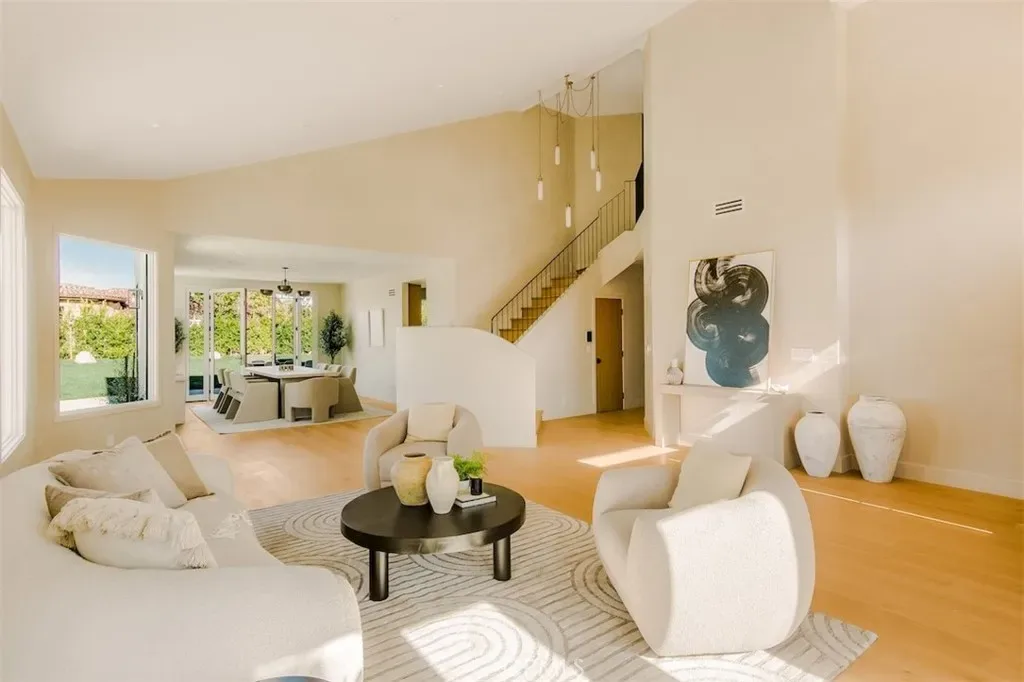 Welcome to 4016 San Remo Way, a statement estate nestled behind the exclusive 24-Hour Guard-Gated Silverhawk Ridge. Set on a commanding 17,743 sqft lot with sweeping views of the valley and Santa Monica Mountains, this newly reimagined residence is a masterclass in modern California luxury. A striking arrival sets the tone, where a custom oak front door and wood-clad garage hint at the level of craftsmanship and intention carried throughout the home. Inside, dramatic two-story vaulted ceilings and a sun-drenched open floor plan create an immediate sense of scale, volume, and effortless sophistication. Every detail has been carefully curated. Plastered interior walls, solid oak flooring, custom cabinetry, and bespoke lighting come together to create a warm yet refined palette. Expansive Fleetwood sliding doors and Lincoln windows dissolve the boundary between indoors and out, elevating the home’s connection to its natural surroundings. Integrated speakers throughout the home allow music to flow seamlessly from room to room, enhancing the overall ambiance and lifestyle experience. The living spaces are both grand and inviting, offering a formal living room, an elegant dining area, and a stunning family room – all seamlessly connected to a showpiece kitchen with marble countertops and premium finishes, designed for everyday living and elevated entertaining. The primary suite is a true retreat, privately positioned to capture breathtaking views across the valley and into the Santa Monica Mountains. A private balcony extends the space outdoors, while a generous walk-in closet and spa-like bath complete the experience, creating a setting that feels both indulgent and serene. Each of the four bedrooms and bathrooms has been thoughtfully designed with a cohesive, high-end aesthetic, including a sculptural powder room featuring a natural stone, chiseled-edge vessel sink. An attached studio ADU with one bathroom offers ultimate flexibility, ideal for a media lounge, game room, guest quarters, or private studio. Outdoors, the estate transforms into a private resort. A sprawling backyard framed by mature hedging offers complete seclusion, with a pool, multiple lounge and entertaining areas, and an abundance of space to host or unwind under the open sky. Positioned just moments from Mulholland Hills and El Caballero Country Club, this turnkey residence offers a rare blend of privacy, design, and prestige within one of Tarzana’s most sought-after gated enclaves.
