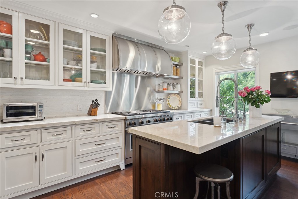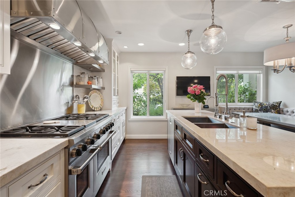 Stunning Tarzana Family Estate South of the Boulevard. Welcome to this gorgeous, over 4,600 sq. ft. family home located in one of Tarzana’s most sought-after neighborhoods, south of the Boulevard. Boasting six spacious bedrooms plus a dedicated home office, this beautifully updated residence offers the perfect blend of luxury, comfort, and versatility. The heart of the home is a remodeled gourmet eat-in kitchen, complete with high-end Wolf appliances, a large center island, and seamless flow into the elegant dining and living areas. Accented by striking wood beam ceilings and a dual-sided fireplace, the living space exudes warmth and charm, ideal for both family gatherings and entertaining. Enjoy movie nights or casual get-togethers in the expansive family room featuring a wet bar and surround sound system. Rich hardwood floors run throughout the home, adding timeless elegance. Downstairs, you’ll find a secondary primary suite with a spa-like bathroom, ideal for guests or multi-generational living. A sixth bedroom offers flexibility for a gym or additional ADU potential, and the private home office provides a quiet workspace with endless possibilities. Upstairs, the thoughtfully designed kids’ wing includes three generous bedrooms, while the luxurious primary suite offers dual walk-in closets, a spa-style bathroom, and a private balcony overlooking the lush backyard. Step outside to your own resort-style oasis featuring a sparkling pool and spa with tranquil water features, a large grassy area, covered patio, built-in BBQ, pergola, and a sports court—perfect for making memories year-round. This exceptional property combines function and style in an unbeatable Tarzana location. Don’t miss the opportunity to make it yours!