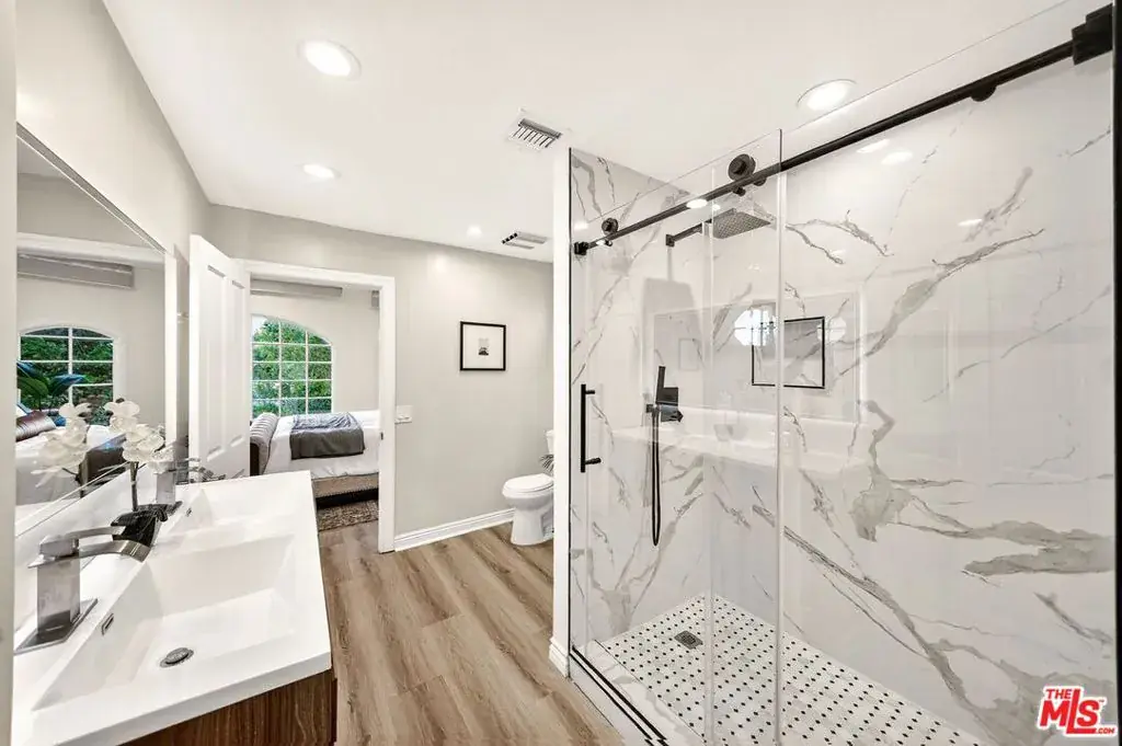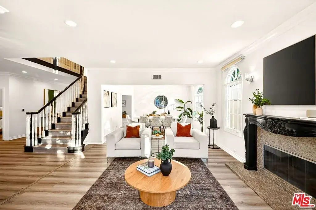Welcome to this charming and beautifully remodeled Tudor Revival residence in Tarzana spacious 4,273 Sq ft home perfectly situated on a generous 7,057 Sq ft lot, offering 5 bedrooms, 5 bathrooms, plus a versatile bonus room ideal for a private office. Nestled on a peaceful, tree-lined street, this home blends timeless European character with modern upgrades throughout.Step inside to a bright, open living room featuring an elegant fireplace, updated flooring, fresh paint, new recessed lighting, and large Tudor-style windows that bathe the space in natural light. The seamless flow creates an inviting atmosphere perfect for both entertaining and everyday living. Adjacent to the living room is a remodeled family room with new finishes and a cozy ambiance ideal for gatherings and movie nights.The dining area sits perfectly between the living room and kitchen, enhanced with beautiful lighting and a refreshed, elegant feel. The remodeled kitchen is the true heart of the home, offering modern cabinetry, sleek quartz countertops, premium hardware, stainless-steel appliances, and an optimized layout that blends style with practicality.For added convenience, the home includes a dedicated laundry area with updated cabinetry and easy access providing both functionality and comfort for daily household needs.This exceptional floor plan also features ”one full bedroom with its own private bathroom on the first level”, offering ease for guests, extended family, or those seeking ground-floor living.Upstairs, the additional 4 bedrooms are generously sized and thoughtfully remodeled with updated flooring, fresh paint, recessed lighting, and spacious closets. The impressive primary suite features its own private fireplace, creating a warm and luxurious retreat. The bonus room on this level serves perfectly as a home office, gym, nursery, or creative studio.All five bathrooms have been beautifully remodeled with new vanities, modern countertops, designer tile, premium fixtures, and refreshed shower and tub areas, bringing a spa-like experience to daily living.Step outside to a private backyard oasis surrounded by mature landscaping ideal for alfresco dining, weekend entertaining, or simply unwinding in a serene outdoor setting. Updated exterior touches enhance the home’s striking Tudor curb appeal.Perfectly located south of Ventura Blvd, the accessibility just minutes from the 101 Freeway, Whole Foods, Gelson’s, Tarzana Village Walk, Westfield Topanga & The Village, and the vibrant dining and shopping along Ventura Blvd. Nearby are Tarzana Recreation Center, Caballero Canyon hiking trails, golf and country clubs, and highly regarded schools such as Wilbur Charter, Portola Middle School, and Taft Charter High (buyer to verify), An incredible opportunity at the best price this Tarzana gem is waiting for you.