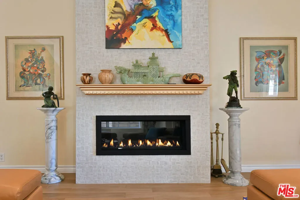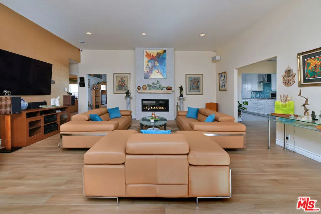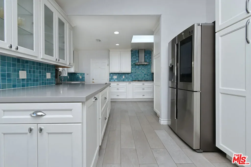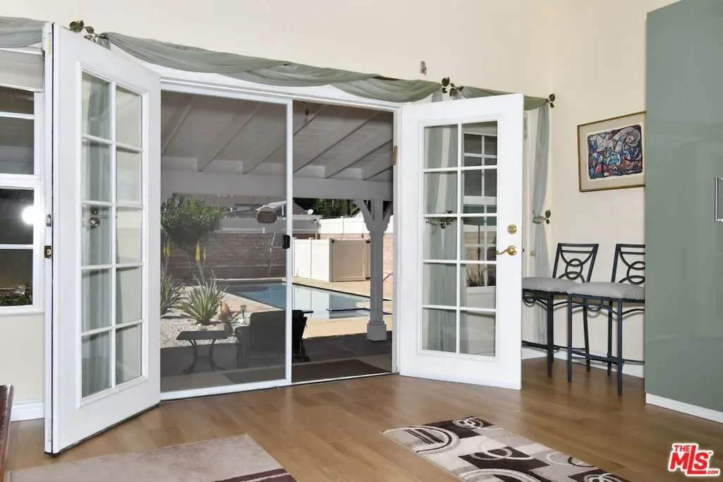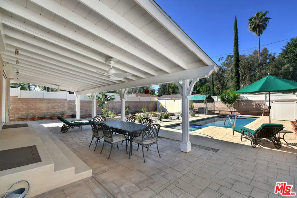 Privately gated single story Tarzana estate on an expansive flat lot. Thoughtfully expanded in 2005 and beautifully remodeled in 2018, this 4bed, 3bath home blends timeless elegance with modern comfort. The chef’s kitchen features quartz counters, designer tile, stainless appliances, and a charming breakfast area. A dramatic family room showcases soaring cathedral ceilings, a striking fireplace, and a sweeping bow window that fills the space with natural light.The luxurious primary suite offers French doors to the yard, a spacious walk-in closet, and a spa inspired bath with dual vanities and a sleek glass enclosed shower. Smart Home upgrades include Cat 8 wiring, 10 camera security system, automated metal shutters, tankless water heater, backup generator, water filtration system, and intercom entry.The resort style backyard features lush landscaping, multiple fruit trees, a sparkling saltwater pool and spa, and a covered patio with fans, lighting, outdoor speakers, and sun shades ideal for year round California living. A rare single story luxury estate offering privacy, sophistication, and modern amenities in prime Tarzana.