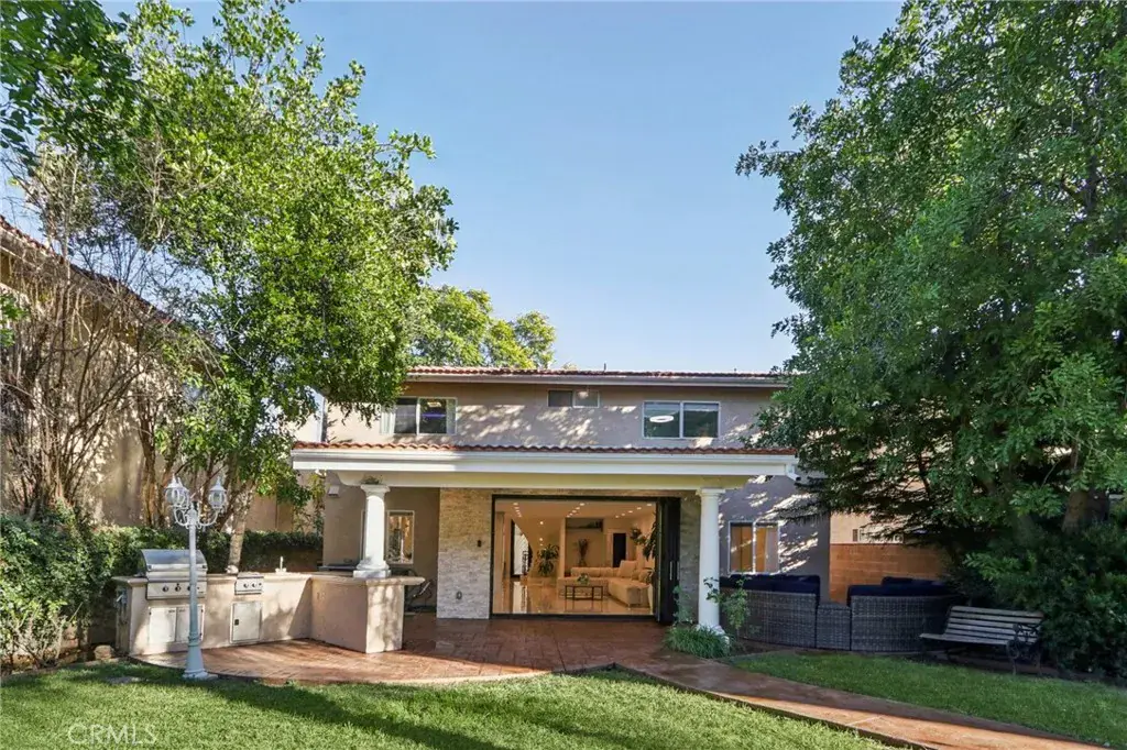 Stunning. Elegant. Immaculate. These words perfectly capture this newly remodeled Tarzana masterpiece, where luxury and craftsmanship converge. Enter through custom wrought-iron doors and step into an extraordinary residence showcasing over 2,600 square feet of impeccably designed living space with five bedrooms and four beautifully appointed bathrooms. The entertainer’s open floor plan is highlighted by a dramatic living room with soaring ceilings, seamlessly flowing into the dining area and a one-of-a-kind custom chef’s kitchen. Featuring natural stone countertops, a generous center island, premium built-in stainless steel appliances, and bespoke finishes, this kitchen is both functional and striking. A cozy family room completes the main living space, perfect for everyday comfort or hosting guests. A grand marble staircase with custom iron railings leads to the luxurious primary suite, a true work of art. This private retreat features custom Italian paint, designer ceilings, a spacious walk-in closet with custom built-ins, and a en-suite bathroom with dual vanities and an oversized shower. Each additional bedroom is thoughtfully designed with unique, tasteful details and exceptional craftsmanship throughout. Step outside to a resort-style tropical backyard, ideal for entertaining. Enjoy a covered patio, built-in BBQ, gas fire pit, expansive grassy area, and a tranquil pond with a cascading waterfall—your own private oasis. Additional highlights include updated plumbing and electrical systems, custom interior doors, dual A/C units, a downstairs bedroom with a full bath, and countless premium upgrades throughout. The seller has invested hundreds of thousands of dollars into this home, and it is evident in every exquisite detail. A rare opportunity to own a truly exceptional luxury residence in Tarzana.