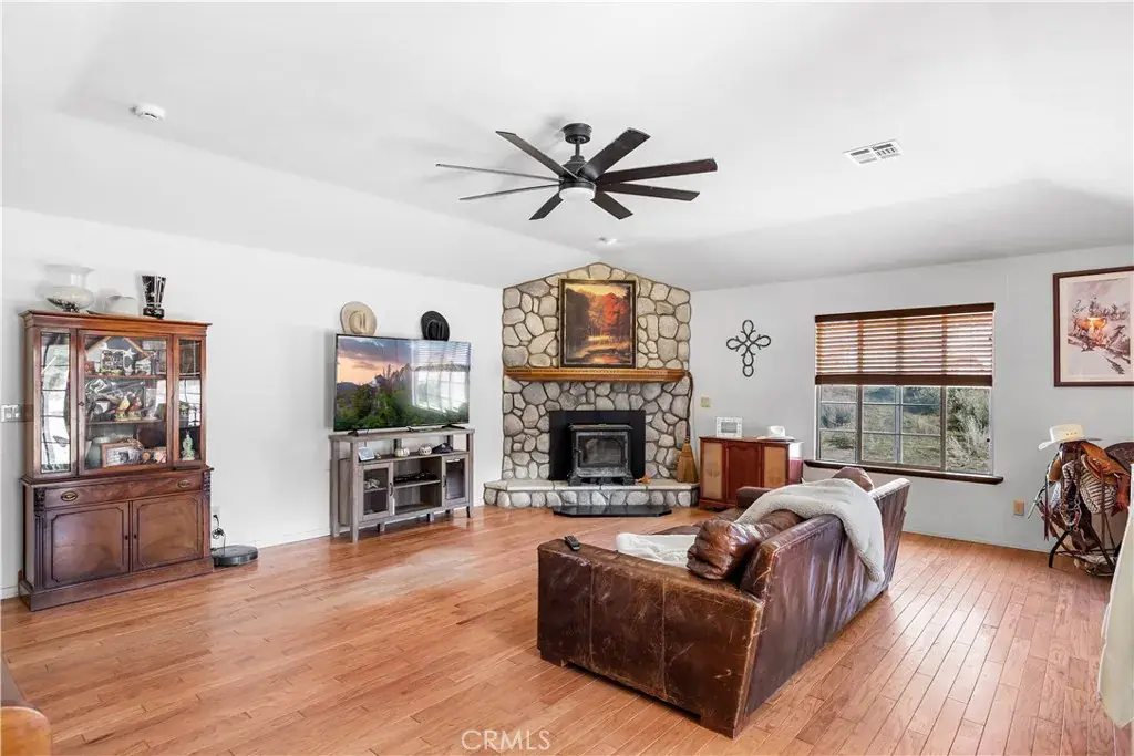 Escape to this beautiful 20-acre ranch retreat offering panoramic views and peaceful country living at its finest. This spacious 3-bedroom + den/office, 2-bathroom home features a bright, open floor plan designed for both comfort and entertaining. The kitchen overlooks the family room, creating a warm and inviting space perfect for gatherings. The living room boasts a cozy fireplace and a convenient wet bar—ideal for relaxing evenings or weekend get-togethers. The primary suite offers a private retreat with double sinks, a walk-in shower, and generous closet space. The two additional bedrooms are perfect for additional family, guests, remote work, or hobbies. Step outside and experience the best of country living! 20+ acres offer endless opportunities for recreation and agriculture. Equestrian enthusiasts will love the 6-stall barn, and fenced pastures, providing plenty of room for horses or cattle to roam. Additional features include a new septic tank, newer roof, air conditioning, dual-pane windows, and the home’s own private well. Enjoy ceiling fans throughout and breathtaking views across the valley from every angle. This Tehachapi ranch combines rural tranquility with modern comfort—perfect for anyone seeking space, privacy, and endless possibilities. Don’t miss this rare opportunity—schedule your private tour today!