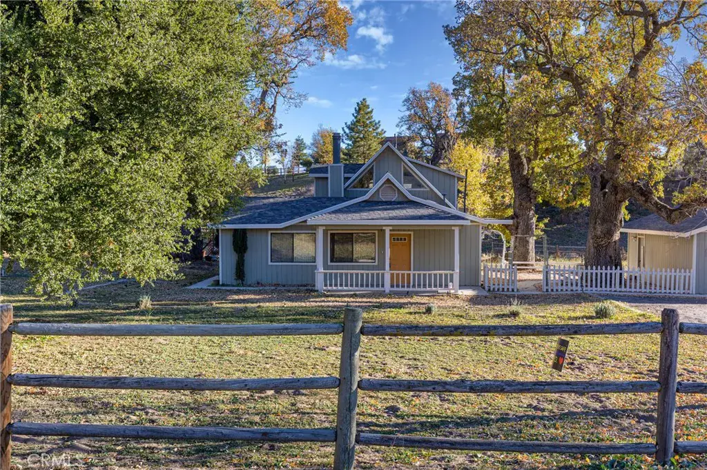 Back on the market! Come see this beautiful home in gated Bear Valley Springs. Enter your home from the front porch into a large living room. Walk across the room and through the door, and you will see the large family /dining room with fireplace for cuddling up, reading a book, and enjoying the crisp winters. Watch the deer as they come to visit. There is a large, open remodeled kitchen with large center island, quarzite counters, large farmhouse style sink, newer oven, microwave and dishwasher. The kitchen also has lots of cupboard space for storage. The laundry room is directly off of the kitchen and has plenty of room for a large washer and dryer, extra cupboards, or to set up your ironing board. There are also 2 bedrooms and 1 1/2 baths downstairs. Upstairs, there is a large primary bedroom, bathroom, and a loft area, with a mini-split unit up there for .heat and air. Outside, there is a lovely covered front porch that is large enough for chairs and tables to enjoy the beautiful evenings with a glass of iced tea in the summers and hot chocolate in the winters. There is a rear patio for those summertime barbeques and family get-togethers. Horses are permitted on the property. Through the sliding door in the famly room there isi a large patio slab for your barbeque and tables for get-togethers with your family and friends. Also there is another area between the house and detached two car garage for a quiet sitting area that is shaded by oak trees, and has a zen water fountain. It would be a great place to hang lights or to raise a flower garden. Enjoy the community lakes for fishing, swimming, or boating, community pool, rec room, Tennis and pickleball courts, horse and hiking trails, dog park and play areas, dining, golf, campground. There are two fire hydrants next to the property. One is on the Martingale side near the corner, and the other is on the Bear Valley Road side in front of the property. This home sits on an approximately 74,488 square foot corner lot with large oak trees and lots of space for kids to run around and to store your toys!