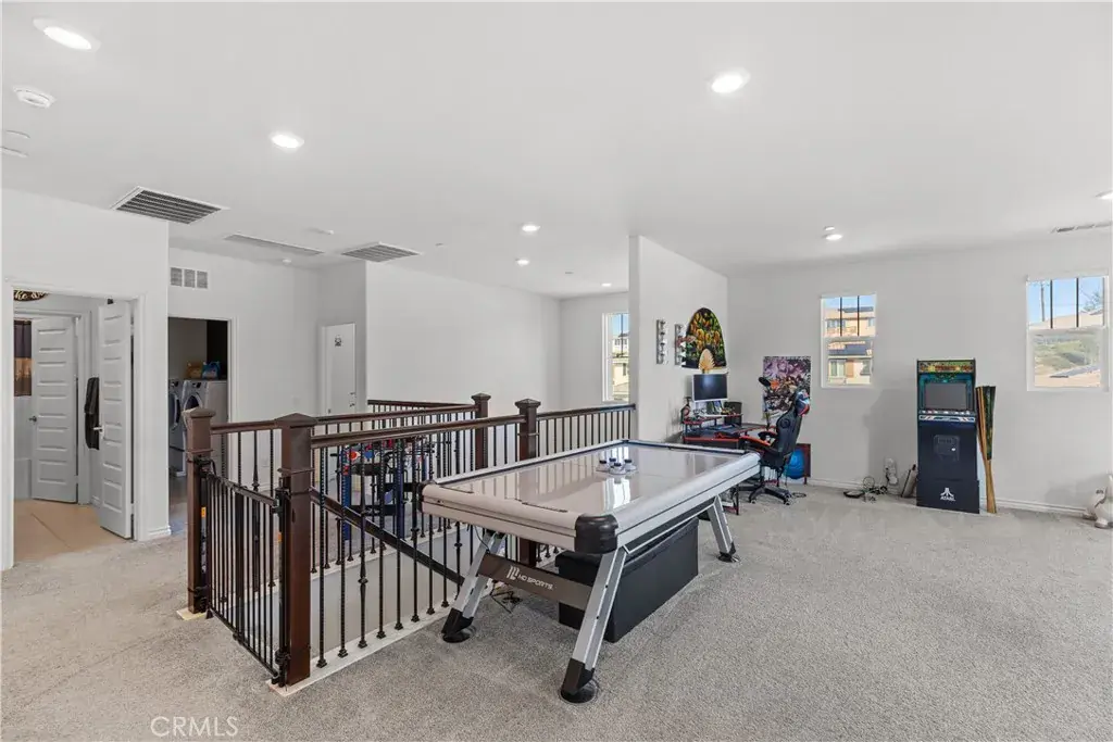 Upstairs, a spacious loft leads to four bedrooms and the laundry room, including a primary suite with a soaking tub, walk-in shower, and walk-in closet. Step outside to your private retreat with a pool, spa, and waterfall feature. All this in a gated community just minutes from award-winning Temecula wineries, top schools, shopping, and dining.