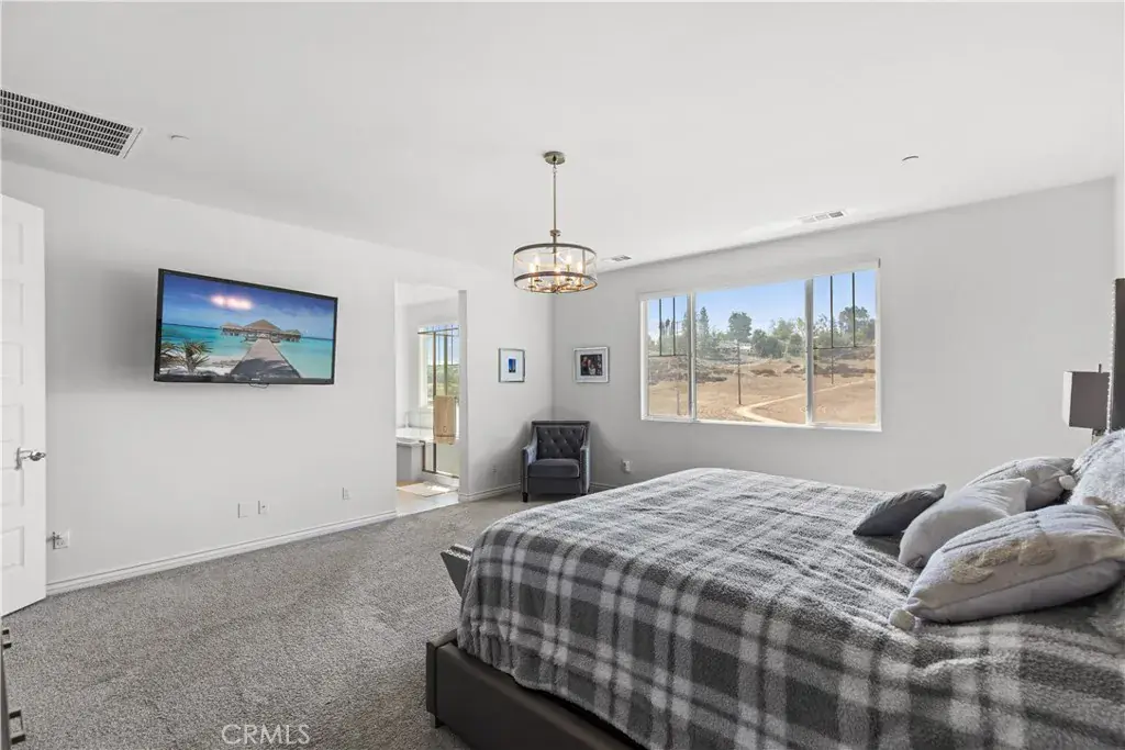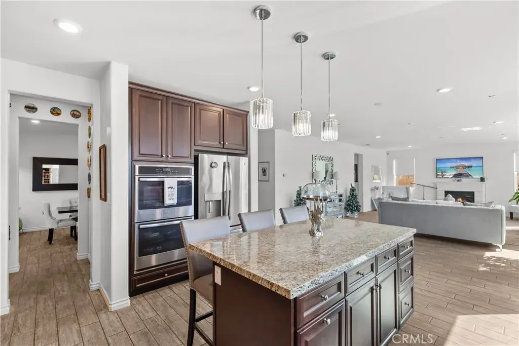 Welcome to this stunning 5-bedroom, 3.5-bath home in the gated Nicolas Heights community of Temecula. Offering 3,648 sq. ft., a 3-car tandem garage, and 24 solar panels that will be paid off at close of escrow, this home blends comfort and efficiency. Tucked at the end of a cul-de-sac with no neighbors behind or to the right, you’ll enjoy wide-open meadow views and beautiful sunsets. Inside, the open floor plan features a downstairs office, a convenient first-floor bedroom, and a chef’s kitchen with granite countertops, stainless steel appliances, a center island, and double ovens that flow seamlessly into the family room filled with natural light.