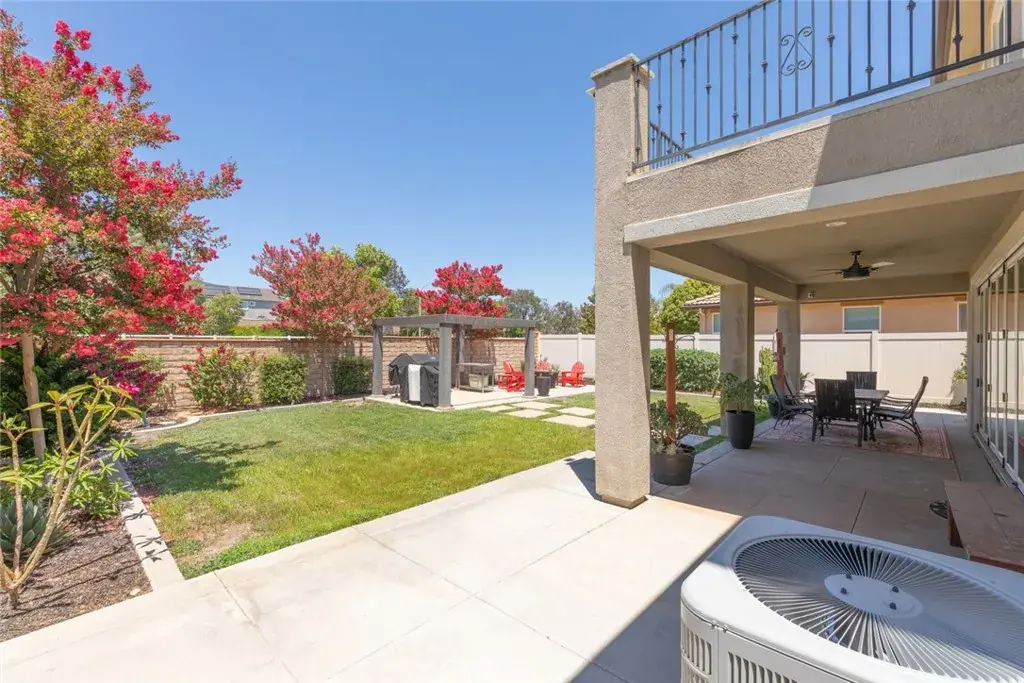 Popular floorplan located in the gated community of Roripaugh Ranch offering over 2,800 sq. ft. with 3 bedrooms + a flex space/office downstairs that can be used as a bedroom, 2.5 baths, and a spacious loft. The open-concept layout downstairs features a large kitchen, dining area, and great room—ideal for entertaining. A 16-foot bifold door expands the great room into the covered California Room, blending indoor/outdoor living. The kitchen is upgraded with shaker cabinetry, quartz counters, subway tile backsplash, and stainless steel appliances. At the front of the home, you’ll find a private flexspace, bedroom/office with a walk-in closet and a nearby powder room. Upstairs includes a large loft, two secondary bedrooms, full bath, laundry room, and an impressive primary suite with stunning northern mountain views. The primary bedroom opens to a large private deck for enjoying panoramic scenery. Windows have been updated with modern shutter and solar is paid off!! The backyard is thoughtfully landscaped with multiple areas to entertain, including a 12×12 gazebo and covered California Room. No rear neighbors and plenty of space for a future pool. Residents enjoy resort-style amenities: clubhouse, 24/7 fitness center, pool, spa, tennis and basketball courts,private walking trails, and a large central park. Low tax rate and located within the award-winning Temecula school district.