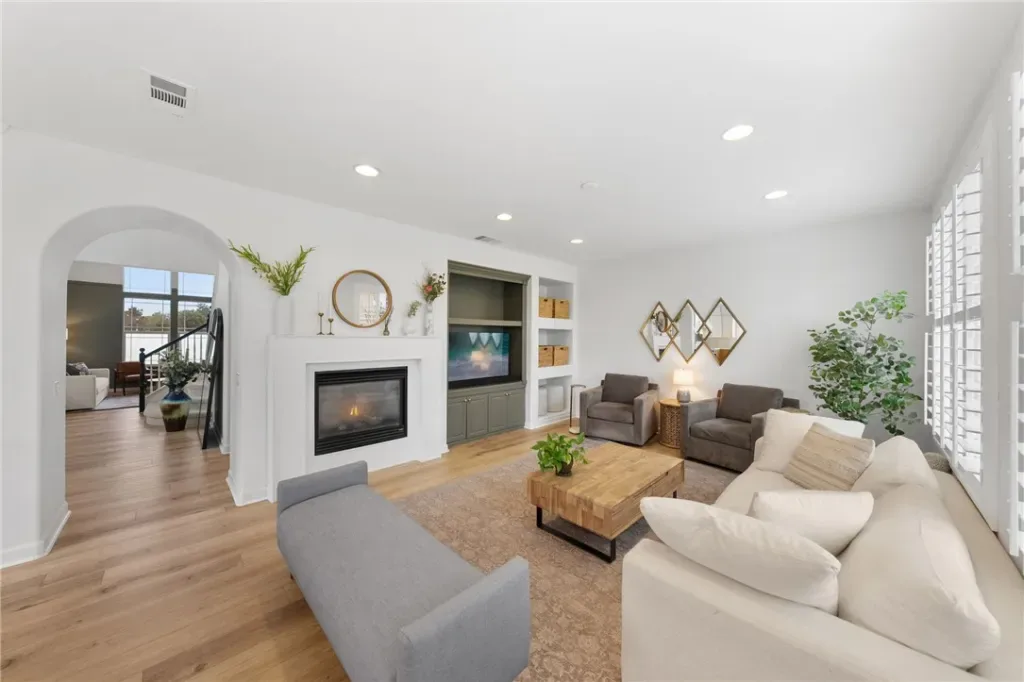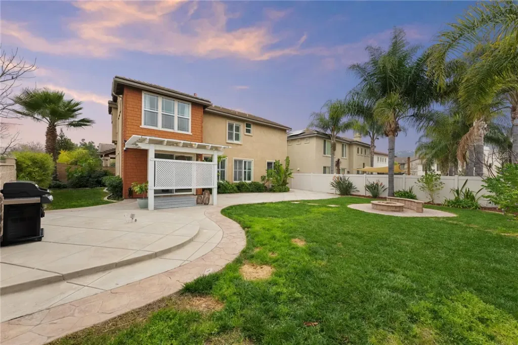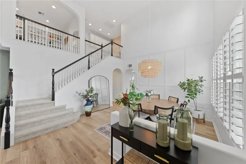 WOW!!! This home is design magazine worthy with stunning modern updates, abundant natural light, light-toned LVP flooring, plush neutral carpet in the bedrooms, and plantation shutters throughout. The formal living room offers a sophisticated, moody vibe with richly painted walls and a cozy fireplace, while the formal dining room impresses with soaring two-story ceilings, picture-frame molding, and easy access to the kitchen. The inviting family room features a built-in media center with cabinets and shelving, along with a second fireplace for cozy gatherings. The showstopping kitchen is a true dream with quartz countertops, a two-level island with bar seating, pullout cabinetry and lazy Susan, glass-front cabinets, luxe gold hardware and faucet, a six-burner range, stainless steel appliances, dual built-in trash receptacles, floating shelves, a statement backsplash, and designer pendants and recessed lighting. Upstairs, the must-see loft includes a custom-built-in divider creating the perfect home office space, along with additional shelving and cabinetry. The primary suite is a private retreat with a sitting area and spa-inspired en suite bath featuring a soaking tub, walk-in shower, dual sinks, vanity area, and mirrored walk-in closet. Two secondary bedrooms offer mirrored closets, neutral carpet, and easy access to a full bathroom with dual sinks. Outdoors, unwind in the spacious backyard complete with a firepit, custom concrete, grassy play area, tropical landscaping, and a slatted Alumawood patio cover, with rare privacy thanks to no neighbors on one side and distant rear neighbors. Located within the boundaries of Great Oak High and just minutes from parks, the clubhouse, Pechanga Resort & Casino, and Old Town Temecula, this home is nestled in the highly sought-after Wolf Creek community, offering resort-style amenities including pools, spas, fitness center, walking trails, sports courts, and more.