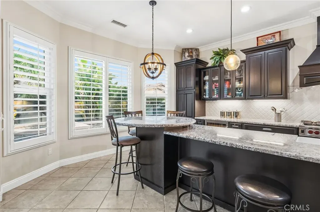 A beautiful and rare opportunity to purchase a meticulously cared-for single-story pool home, proudly maintained by its current owners. Offering approximately 3,000 square feet, this thoughtfully designed home features 4 bedrooms and 3 full bathrooms with a highly functional floorplan. As you enter the home, three bedrooms are positioned toward the front of the property, one of which is currently set up as a private office, perfect for working from home. The home offers multiple living and entertaining spaces including a welcoming living room, formal dining room, and a spacious family room that flows seamlessly into the gourmet kitchen. The kitchen is a chef’s dream, complete with top-of-the-line appliances, rich cabinetry, custom lighting, and a large island with a built-in table and bar-height seating—perfect for gathering and entertaining. For wine enthusiasts, the home features a custom wine cellar with its own dedicated mini-split AC system to maintain ideal temperatures year-round, offering storage for approximately 575 bottles with display shelving. Privately situated on the opposite side of the home, the expansive primary suite offers direct backyard access and a beautifully appointed bathroom with granite counters, a large walk-in shower with dual shower heads, and a spacious walk-in closet with custom built-ins and center island. Additional upgrades include crown moulding, plantation shutters, upgraded lighting and fixtures, soft-close cabinetry, LED lighting, and engineered wood and tile flooring throughout with no carpet. The inviting family room showcases a stacked stone fireplace, built-in entertainment center, and surround sound speakers. The garage features epoxy flooring and built-in cabinets, while the oversized laundry room includes additional cabinetry and a utility sink. The home also includes owned solar panels and a water softener system. Step outside to an entertainer’s backyard featuring a sleek Pebble Tec saltwater pool and spa with waterfalls and stacked stone accents, a solar cover, newer pump, and Jandy remote controls. The outdoor space also includes a built-in barbecue island with stainless steel grill and mini fridge. Located on a quiet cul-de-sac in desirable South Temecula within the Great Oak School District and just minutes from shopping, dining, and Temecula’s award-winning wineries. With low HOA and pride of ownership throughout, this rare single-story pool home is truly a standout. Welcome Home!