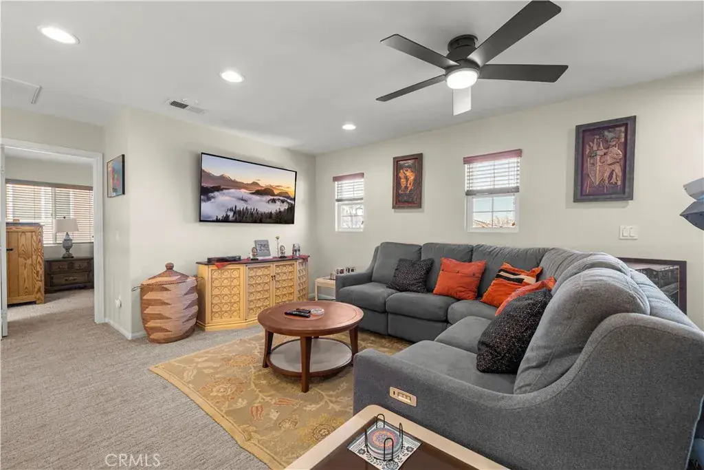 Welcome to this spectacular home offering a spacious and highly desirable open floor plan designed for comfort, flexibility, and everyday living. From the moment you step inside, you’ll feel the warmth and elegance created by fresh neutral paint, abundant natural light, and thoughtfully designed spaces throughout. Just off the entry, a large office or den provides the perfect spot for working from home, crafting, or creating a personal library. The adjacent formal living and dining areas flow effortlessly into the heart of the home through a convenient butler’s pantry, leading you to a truly impressive kitchen. Designed with both beauty and function in mind, the kitchen features an oversized island with storage and bar seating, granite countertops, stainless steel GE appliances, a walk-in pantry, and a full-size dining area. Open to the kitchen is a welcoming family room complete with a gas fireplace for cozy evenings and an overhead fan to keep things cool during warm Southern California days. A downstairs bedroom and full bathroom offer ideal accommodations for guests or multi-generational living, while a dedicated laundry room adds convenience with generous cabinetry, counter space, and a sink. Upstairs, a bright and airy loft sits at the front of the home, offering a flexible space for relaxing, studying, or entertaining. The expansive primary suite is a true retreat, featuring two walk-in closets, dual sinks, a sitting vanity area, a soaking tub, and a walk-in shower with built-in seating. Three additional bedrooms and two more bathrooms—including a Jack-and-Jill bath—provide plenty of room for everyone. Located within walking distance to multiple parks, including a popular dog park, this home sits in the heart of Morgan Hill, one of Temecula’s most sought-after communities. Residents enjoy resort-style amenities including a top-of-the-line clubhouse, pools, spas, sports courts, and beautifully maintained parks. All of this is set within the boundaries of Temecula’s award-winning school district and just minutes from shopping, dining, entertainment, and the renowned Temecula Wine Country. This is more than a home—it’s a lifestyle. Come experience the best of Temecula living!