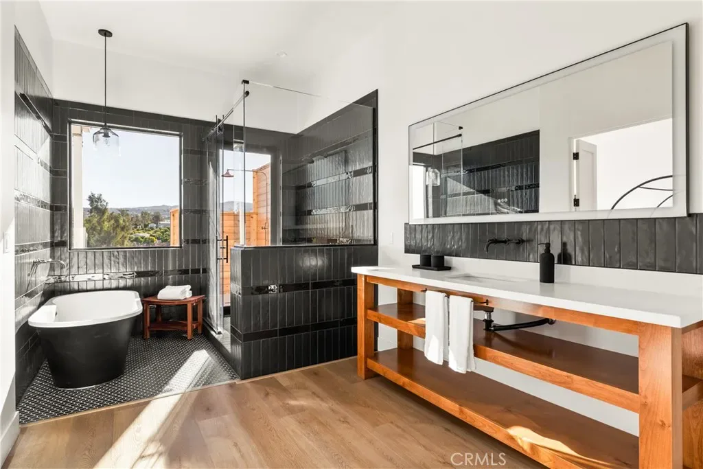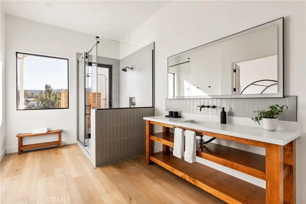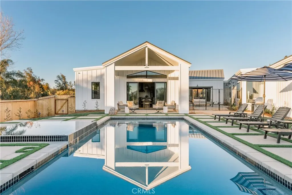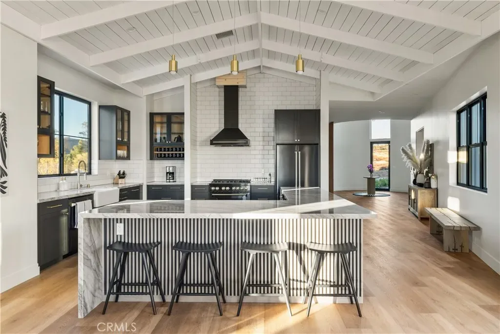 Nestled in Temecula’s renowned wine country, this newer construction custom-built masterpiece encompasses 7,845 square feet, featuring 9 bedrooms and 8 bathrooms. Every aspect has been meticulously curated to harmonize rustic charm with modern sophistication. Vaulted 16-foot ceilings and white wood paneling create a spacious, welcoming atmosphere, while designer finishes enhance every corner of this opulent retreat.
