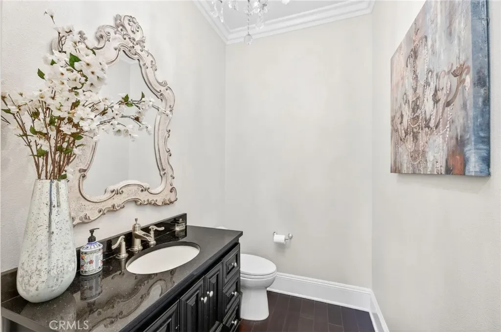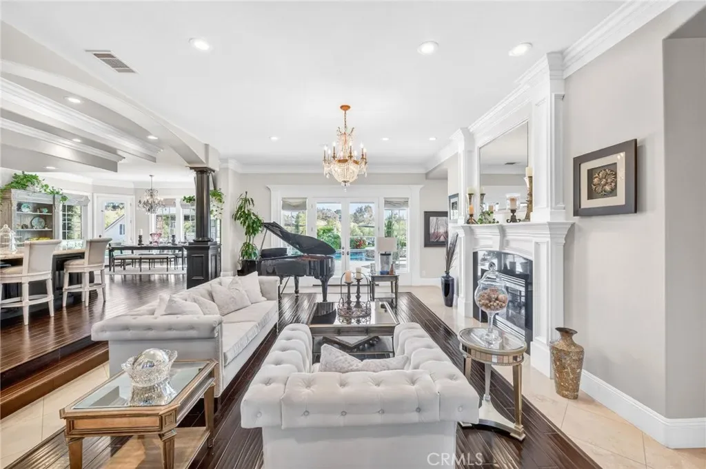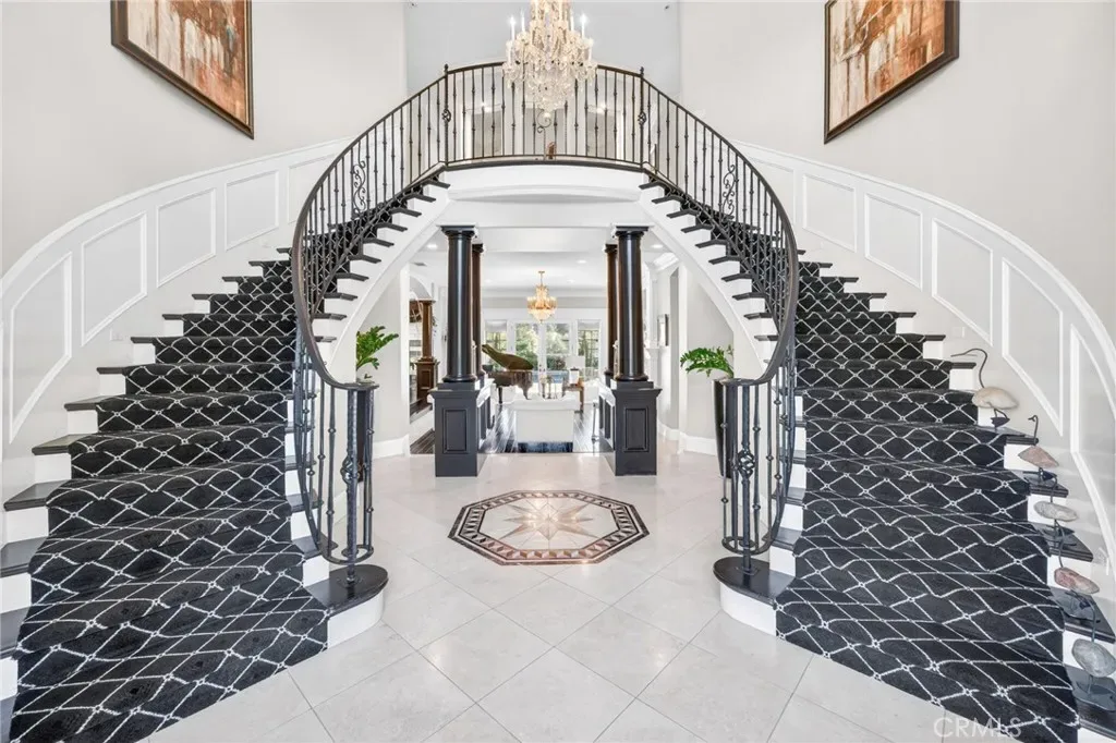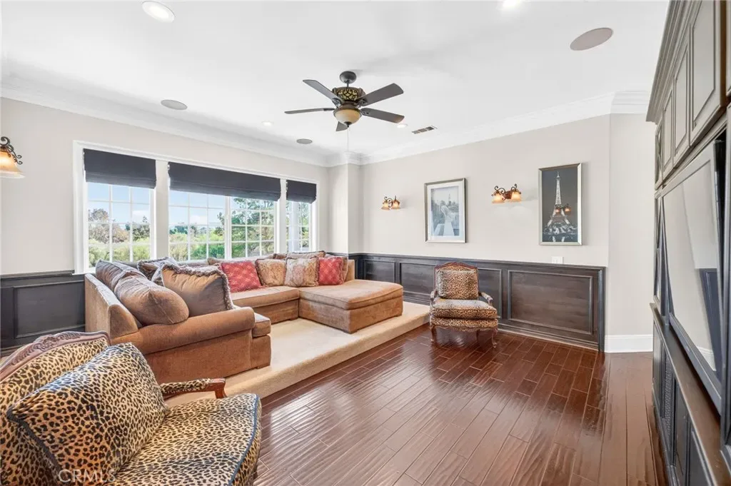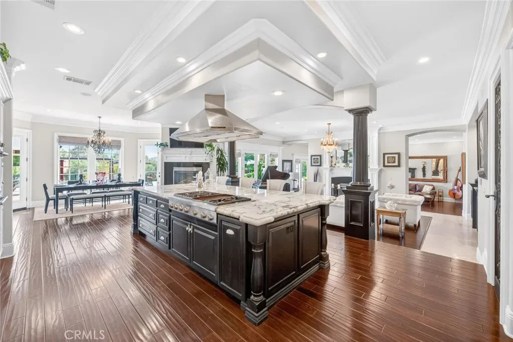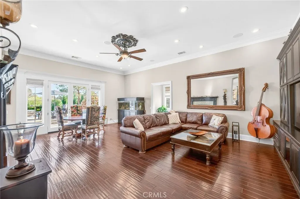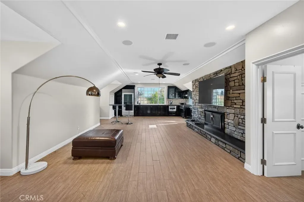 Experience refined country living in this extraordinary luxury estate in Temecula Wine Country, offering approximately 6,887 square feet of thoughtfully crafted living space on five usable acres. The estate features a main home and a guest home with the main home having six spacious bedrooms, including two on the main level, and five and a half bathrooms. The oversized kitchen impresses with a striking large granite island, Thermador double ovens, and a Sub-Zero refrigerator. Hardwood flooring enhances the main living areas, while a carpeted staircase leads to the second level, where hardwood floors continue alongside four additional bedrooms, three bathrooms, a laundry room, and a bonus movie room. Step outside to a true backyard retreat, complete with a resort-style pool and spa, outdoor kitchen, and beautifully landscaped patio. Dramatic, castle-inspired stairways lead to a basketball court, detached garage and pasture with barn and arena. A private ADU guest home sits above the garage, offering a versatile space ideal for guests, extended family, or potential rental income, with convenient RV parking nearby. The expansive, flat acreage also provides ample opportunity for equestrian use or additional outdoor amenities. This exceptional property offers a rare blend of luxury, privacy, and endless potential in one of Southern California’s most desirable settings. For added convenience, RV parking with a dedicated plug is located adjacent to the ADU. This 6 bedroom home is located in Country Road Estates which consists of 128 – 5 acre parcels just on the edge of Temecula Wine Country. The location is super convenient to town and centrally located to some of the best schools Temecula has to offer. Neighboring homes features large acreages, groves and vineyards. Just minutes from highly desirable Linfield Private School and Saint Jeanne De Lestonnac.