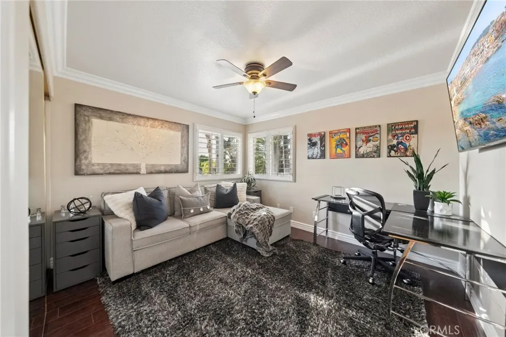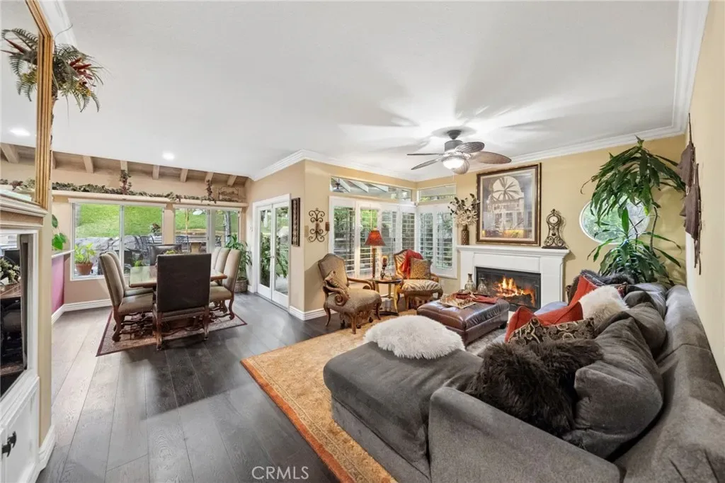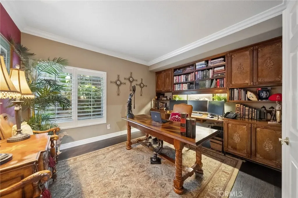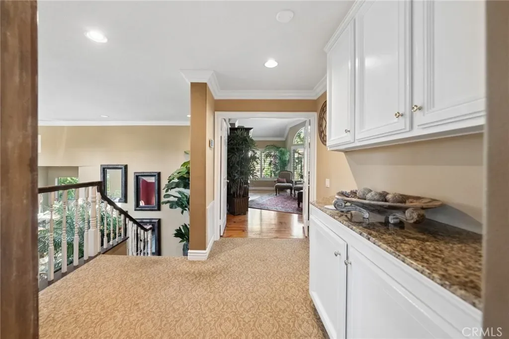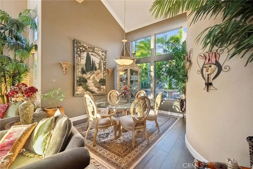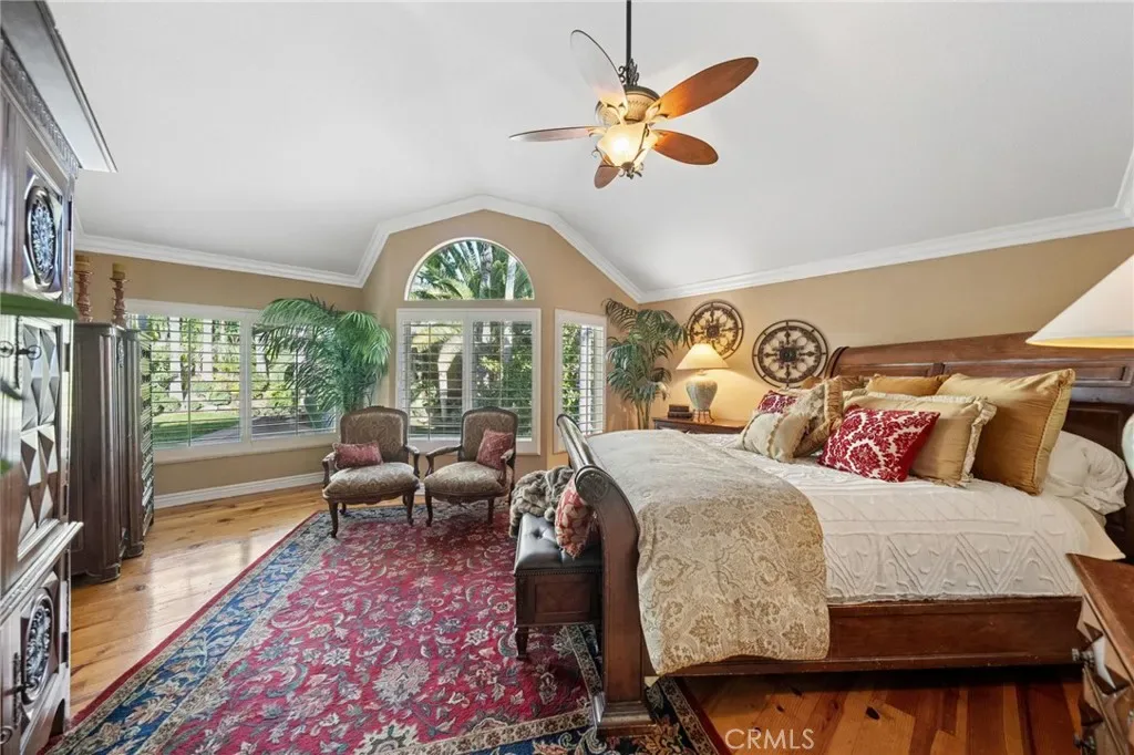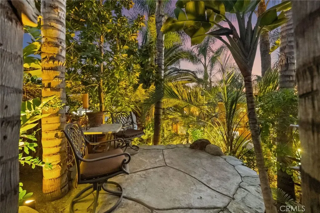 The terraced grounds, masterfully designed and built by Mission Pools, showcase a one-of-a-kind pool and spa framed by over 150 mature palm trees, lush, layered greenery, and 32 strategically placed flood lights that create a stunning evening ambiance. Multiple entertaining zones unfold across three distinct landings, including a built-in BBQ pavilion and a serene koi pond where you can fully immerse yourself in the gardens. A cascading waterfall provides a tranquil soundtrack that can be heard from inside the home, enhancing the seamless connection between indoors and out. Thoughtfully curated and nurtured to maturity, this landscape is not simply maintained – it has been intentionally cultivated.