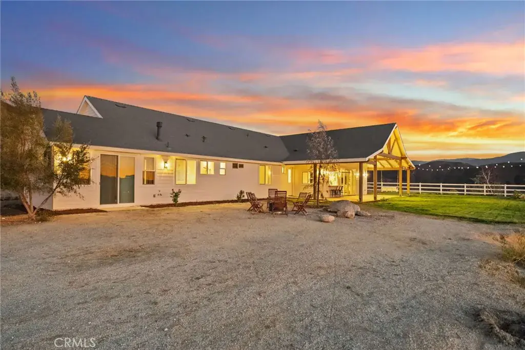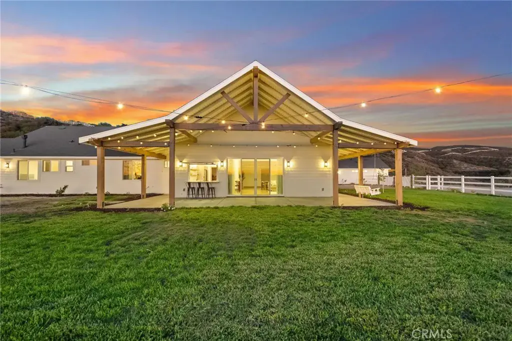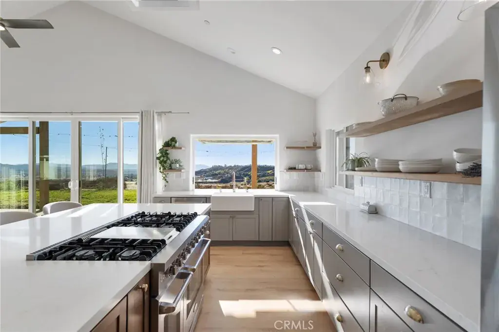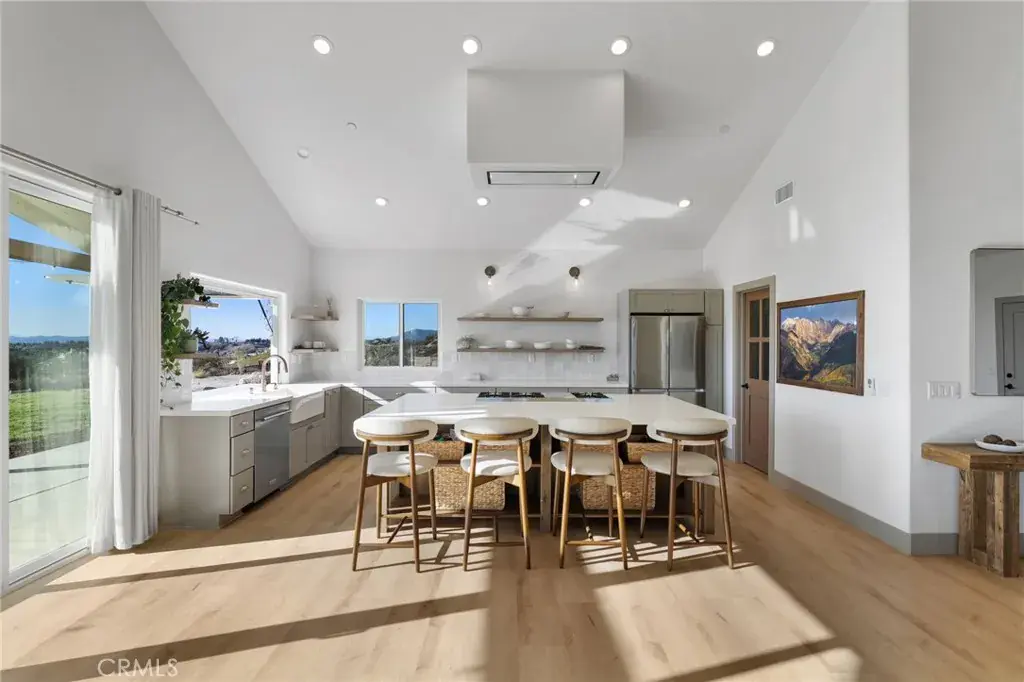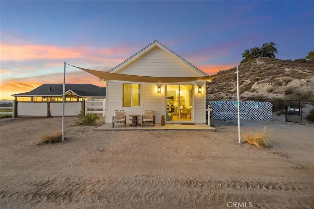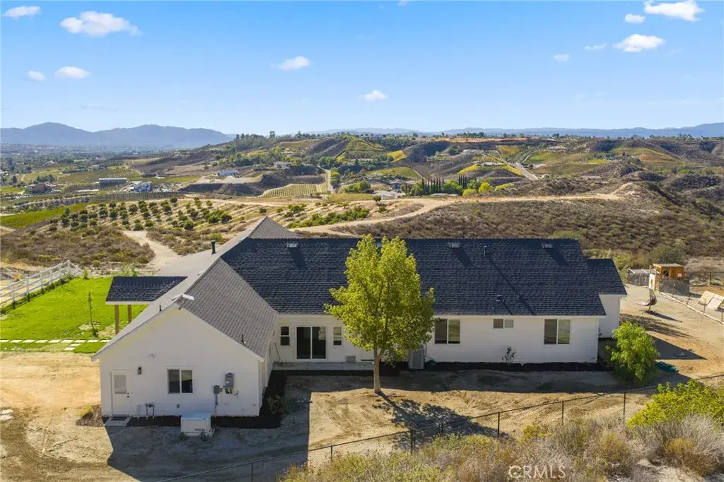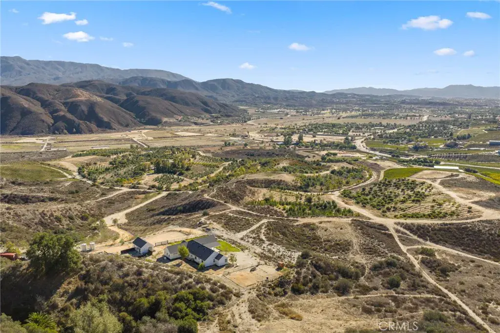 Experience the charm of country life in this custom single story modern farmhouse set on 10 acres with panoramic views in the heart of Temecula Wine Country. Built just three years ago, this home blends timeless farmhouse design with contemporary comfort and sustainable, off grid living. From its inviting wraparound porch to its vaulted ceilings and warm white wood interior, every detail reflects quality and craftsmanship. The open floor plan welcomes abundant natural light and showcases sweeping vineyard valley views from the main living areas. The chef’s kitchen is a showstopper featuring a 48” cooktop, double ovens, farmhouse sink, walk in pantry, and an oversized quartz topped island perfect for entertaining. The living and dining areas flow seamlessly together, anchored by a cozy fireplace and plenty of room for gatherings. The primary suite offers private exterior access, breathtaking views, and its own fireplace. A spa style bath includes a soaking tub, walk in shower, dual vanities, and a spacious walk in closet. Three additional bedrooms, two full baths, a home office or flex room, and a large laundry room complete the thoughtful layout. An attached oversized three car garage with pull through design provides ample space for vehicles, RVs, and recreational equipment. Designed for energy independence, the home features 44 solar panels, 2 batteries, 3 inverters and a backup generator, allowing for true off grid capability. For added versatility or investment potential, the property includes a 680 sq ft ADU with two 1 bed, 1 bath units, each with its own kitchen, living area, and private entrance. Perfect for extended family, guests or rental income opportunities. With no HOA, there’s room to bring animals, add a pool, barn, or workshop. The options are endless. Just minutes from Temecula’s wineries, shopping, dining, and top schools, this property delivers the best of both worlds: peaceful Wine Country living with modern convenience. Discover your forever home and experience sustainable country living at its finest.
