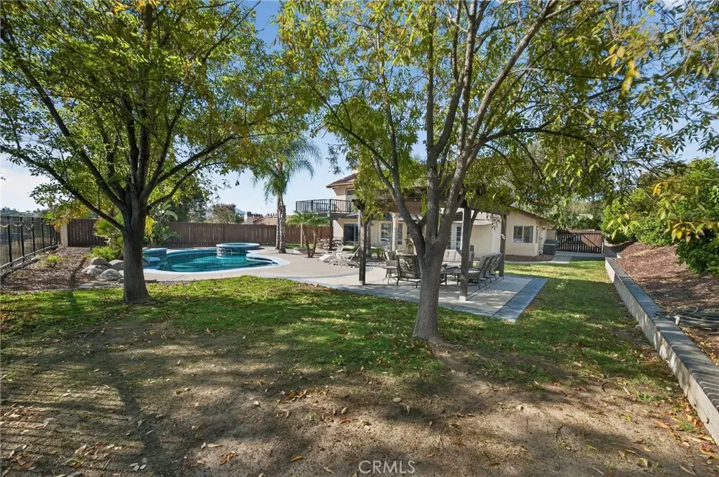 The backyard is a true highlight and an entertainer’s dream, featuring a private pool and spa with a brand-new filtration system, and no rear neighbors for added privacy. Enjoy scenic neighborhood views from the primary suite’s private balcony, perfect for morning coffee or evening sunsets. The expansive lot offers plenty of space for outdoor living, including a covered patio, fruit trees, and additional room for entertaining and relaxation.