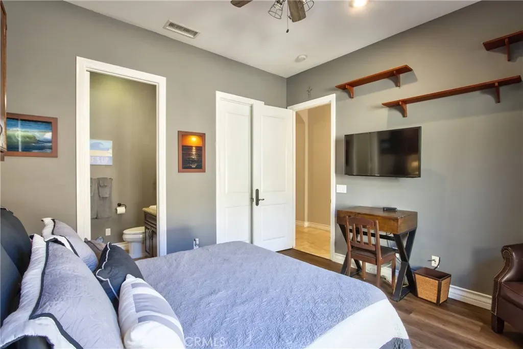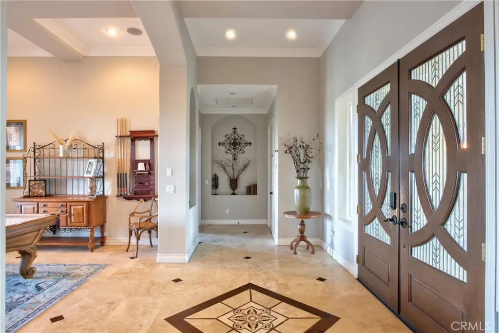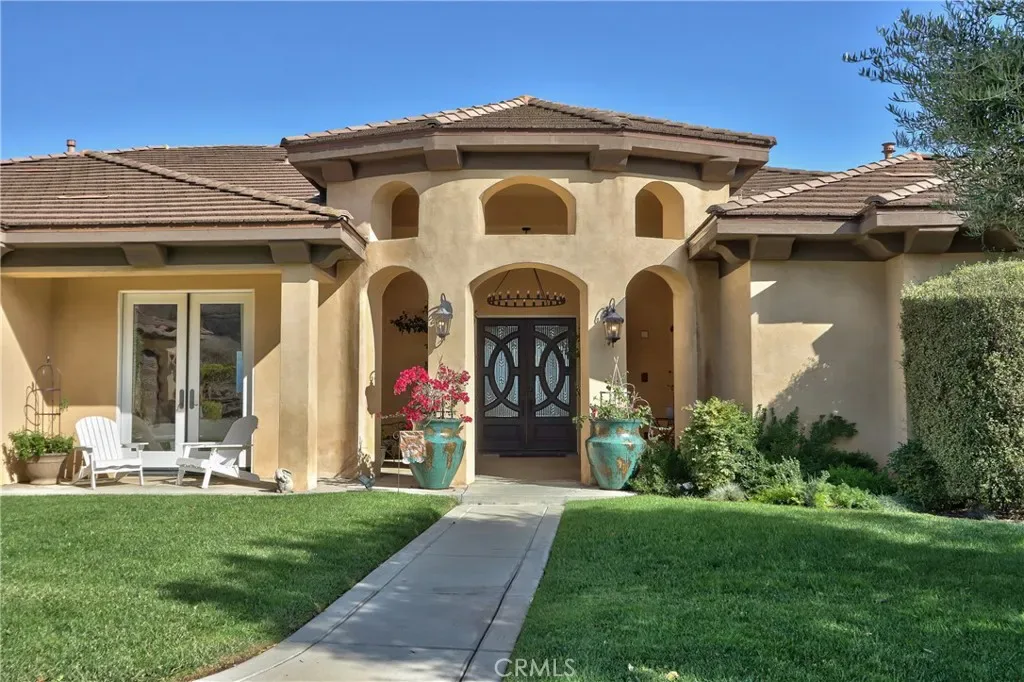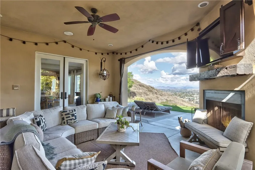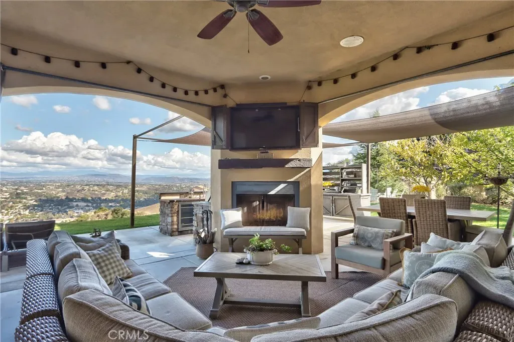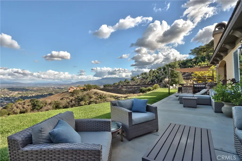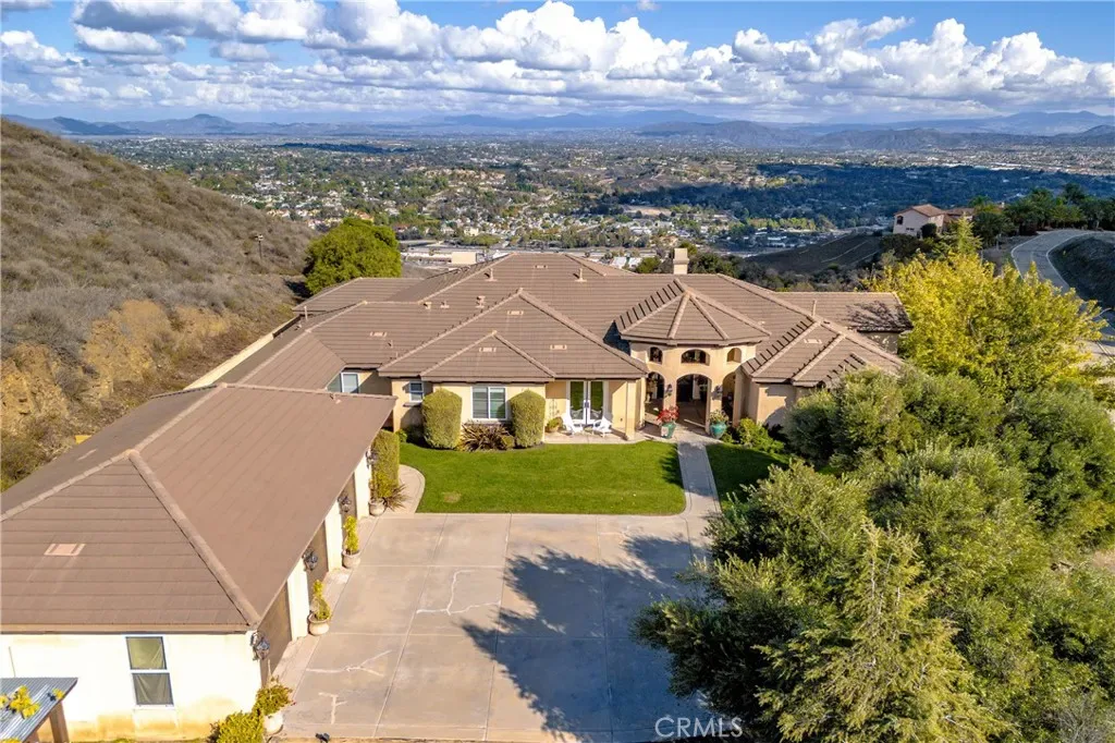 COUNTRY LIVING WITH INCREDABLE VIEWS ONLY 8 MINUUES TO THE FREEWAY, SHOPPING AND RESTAURANTs AND 15 MINUTES TO THE WINERIES. Beautiful 4 Bedroom 3-1/2 Bath 4,386 sq. ft. in the prestigious De Luz community of Temecula offers a light & bright home with an open feel. Breathtaking views city lights, views of Big Bear, Idyllwild & Palomar Mountain. Step through the beautiful double front doors, you’ll notice the entire home is filled with natural light. Featuring elegant travertine flooring, a formal living and dining area with ceilings over 10 feet high. The home offers tall ceilings throughout including 8 foot doors throughout, wide hallways, 5 inch base boards, crown molding, beautiful coffered and tray ceilings. A spacious primary suite boasts 12-foot ceilings, French doors to the backyard, a luxurious bath with a walk-in shower, soaking tub, sitting area, large walk in closets and custom wood cabinetry. The gourmet kitchen is truly a chef’s delight, featuring granite countertops, custom wood cabinetry, stainless steel built-in KitchenAid refrigerator, dishwasher, double wall ovens & microwave including a professional grade Thermador stovetop on natural gas, a very rare find in De luz, wine fridge, a large island, and a walk-in pantry. The family room is open to the kitchen and is equally bright, featuring a cozy fireplace and a flexible adjoining room that can serve as a media or game room. The kitchen, eating area and family room are lined with windows to enjoy the views. The 3 secondary bedrooms are very spacious with two of the bedrooms offering walk in closets and a jack in jill bathroom. The third bedroom boasts a private ensuite bathroom and bedroom with private entrance and patio area would be a perfect multi-generational living. Outside is the perfect with an relaxing entertaining area with a TV, & fireplace. Enjoy a large, built-in barbecue entertaining area with a flat top gill, built-in BBQ, sink and sitting area. An outdoor fire pit, providing the perfect setting to take in those magnificent mountain & city views. With travertine flooring through out the home and new luxury vinyl plank flooring in the bedrooms, enjoy no carpet in the home. The oversized three-car garage is extra deep and could be converted into a ADU. This home is a perfect blend of elegance and functionality. There is room to build another garage, ADU and pool. Home is private and perfect location to enjoy walks or biking with no car traffic.