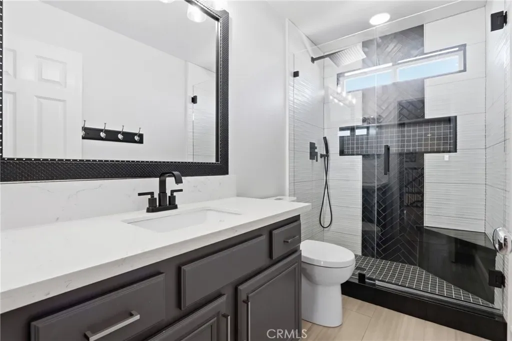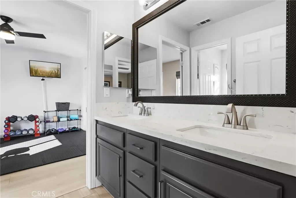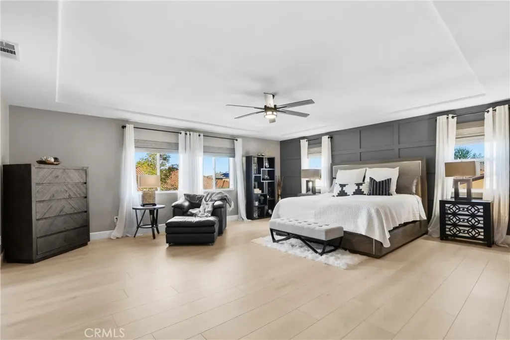 Upstairs, the generous loft offers the ideal hangout or game room. Two bedrooms share a Jack-and-Jill bathroom, while another bedroom enjoys its own private, remodeled bath. The primary suite is truly impressive—an expansive retreat featuring a built-in electric fireplace, dual closets, and a completely remodeled spa-inspired bathroom with dual sinks, his & hers closets and a gorgeous tiled shower.