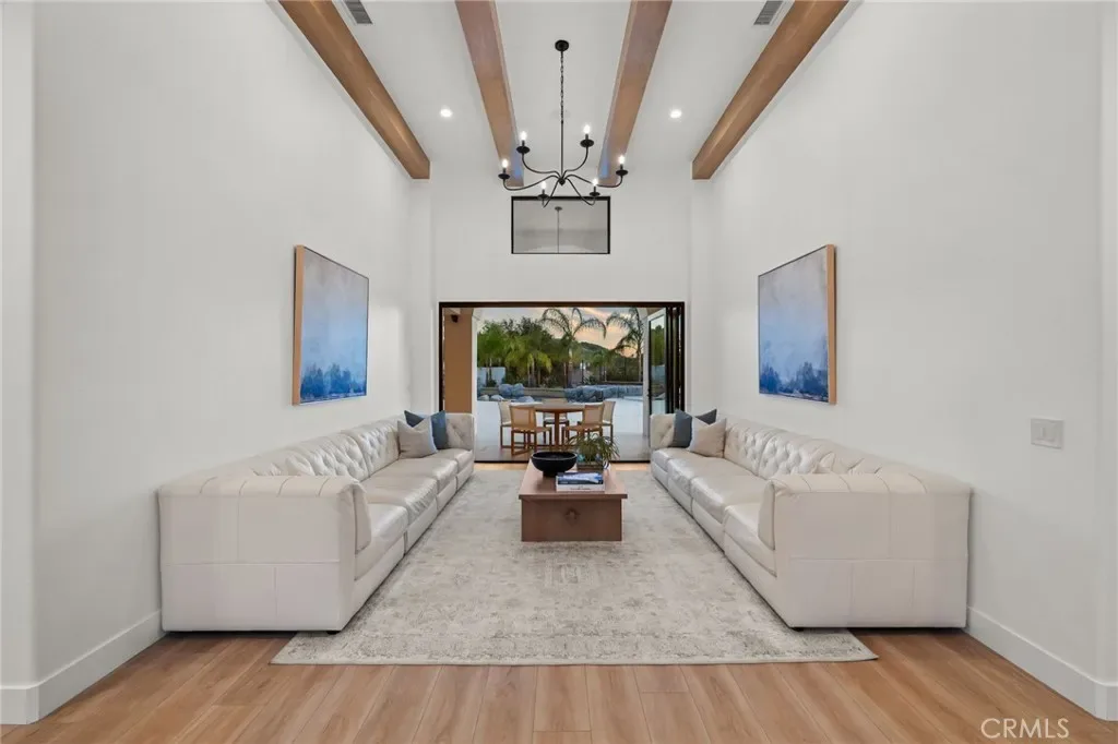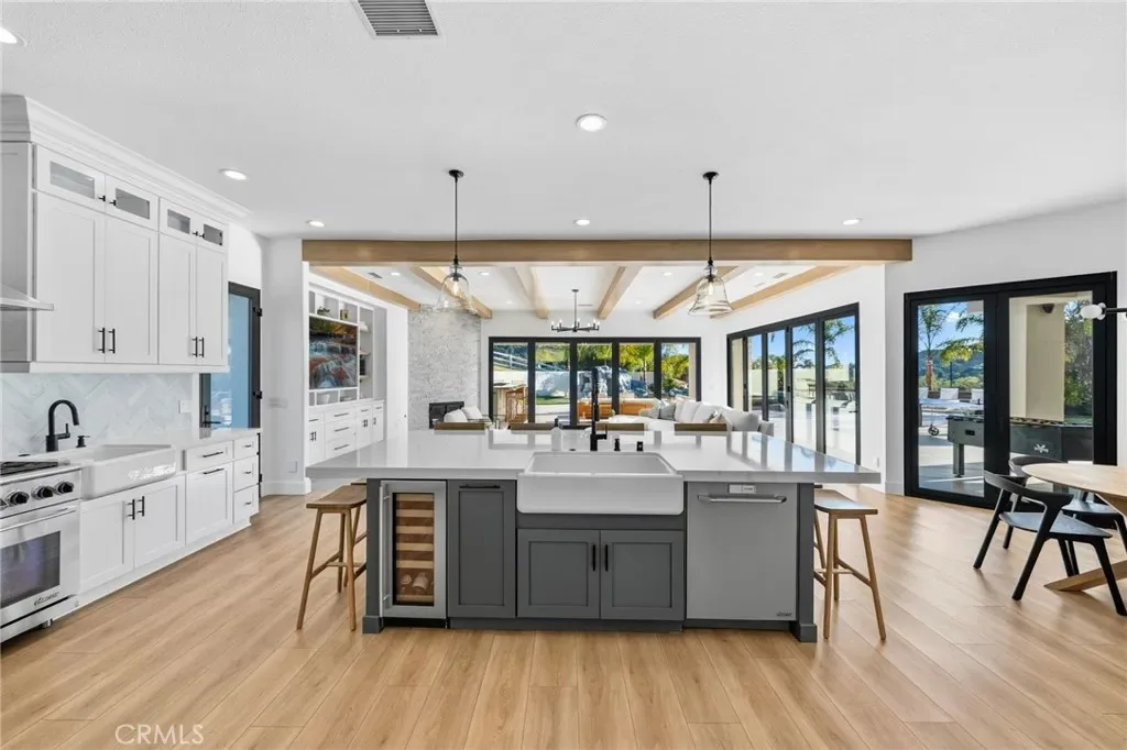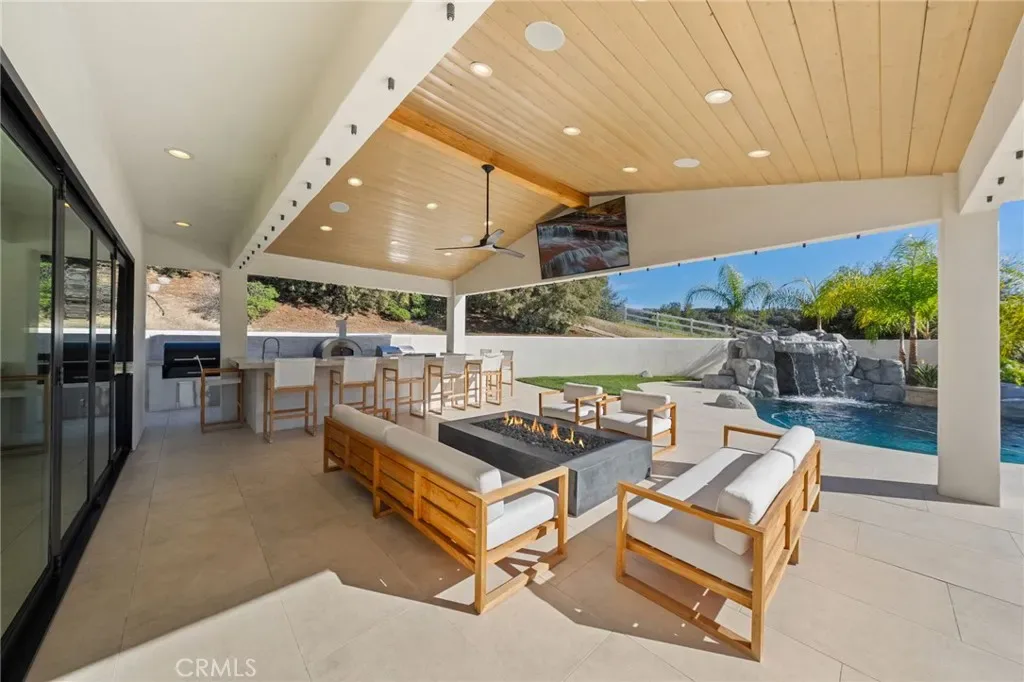 Welcome to a truly one of a kind, fully renovated single story estate, ideally situated in what is arguably one of the best locations De Luz has to offer. Perched at the top of the mountain while still just minutes from town. Set behind a private gated entrance and fully fenced for added privacy, this exceptional property combines luxury, functionality, and lifestyle in one remarkable offering. Spanning just over 4,000 square feet, the home features 4 spacious bedrooms and 4 bathrooms, including three secondary bedrooms with their own en-suite baths, each living like a private master suite, while the fourth bedroom is conveniently located across from a full bathroom. Designed with both comfort and style in mind, the home showcases high ceilings, stunning exposed beams, and an open, light filled floor plan enhanced by pocket doors in multiple rooms for seamless indoor outdoor living. The expansive kitchen is an entertainer’s dream, offering ample space, thoughtful design, and effortless flow into the main living areas. The primary suite is equally impressive, with pocket doors leading directly to the backyard and a beautifully appointed bathroom retreat. Set on approximately 8 acres, the property offers endless possibilities, including room to expand, private trails, and a resort style outdoor experience. Enjoy a sparkling pool and spa, a multipurpose sport court, and a covered patio featuring pitched beamed ceilings, custom tile flooring, misters, ceiling fans, built-in lighting, and multiple TVs. The outdoor kitchen is fully equipped with a built in pizza oven perfect for hosting and entertaining, along with the added luxury of an outdoor shower. Additional highlights include an oversized, nearly 700 square foot garage with custom epoxy flooring, extensive cabinetry, and a water softener system. This home truly has it all… privacy, luxury, space, and unmatched amenities creating a property that feels like it was pulled straight from a Pinterest dream. Opportunities like this are rare. Reach out today, this one will not last long.