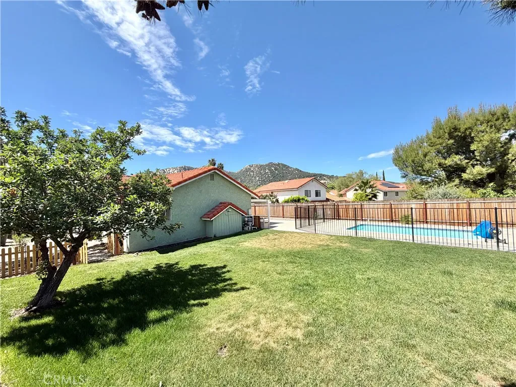 Welcome to Rainbow Canyon Villages! This POOL home offers 5 bedrooms, 2 bathrooms, a 2-car garage, and an open concept layout that flows effortlessly throughout. As you approach, enjoy the lush green landscaping, which is included for added convenience. Entering the home, you are greeted by the open layout featuring a well-sized living room with direct access to the kitchen and a bar area adjacent to the foyer closet. The kitchen has been updated with luxury flooring, a breakfast bar, white soft-close cabinets, a farmhouse-style sink, stylish backsplash, stainless steel appliances, an included microwave, and an abundance of windows that bring in natural light. Down the hallway, you will find convenient built-in cabinetry for extra storage along with a laundry room that includes a washer and dryer. The first bedroom features a spacious walk-in closet and direct access to the garage. The remaining three bedrooms are generously sized with ample closet space and share a hallway bathroom with a shower and tub combo. At the end of the hall is the primary suite, offering sliding closet doors and direct access to the backyard. The en-suite bathroom includes dual sinks on a single vanity and a shower and tub combo. Venturing out to the backyard from either the primary bedroom or kitchen slider, you are welcomed by a covered patio. Just beyond is the gated pool, and the larger-than-average yard provides plenty of space for entertaining and hosting gatherings—truly an entertainer’s dream! Located in proximity to Pechanga Resort & Casino, Great Oak High School, shopping, dining, freeway access, and so much more!!! Schedule your showing today because this will not last long!