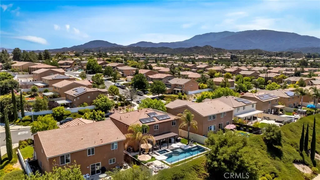 Welcome to 46109 via La Tranquila. This chic Temecula Retreat is located in the highly sought after Redhawk community and just a short distance from some of the most delicious local wineries. Featuring a stunning, remodeled backyard with a sparkling pool and beautiful views, making it an ideal space for dining alfresco or fun pool parties! The interior of this home has been thoughtfully and tastefully refreshed with beautiful new flooring, neutral paint and charming updated bathrooms. Upon entry you will be greeted with a broad front living room that blends to the dining area, perfect for hosting family and friends and as you step around the corner, you’re graced with a remodeled kitchen, featuring a large center island, pantry and tasteful modern finishes. The great room kitchen/family room features a cozy brick fireplace and attractive French doors that open to the outdoor retreat. As you make your way up the white riser stairs case You’ll be met with four bedrooms, including the primary retreat with its peaceful Mountain View’s and walk in closet off the en-suite bath. The upstairs large bonus room offers a great space for recreation, lounging and movie nights. Other modern amenities include a solar power system and battery wall to assist with your home’s energy bill. Ideally located in close proximity to great schools, beautiful golf courses and Temecula‘s charming old town, with its boutique shopping and dining.
