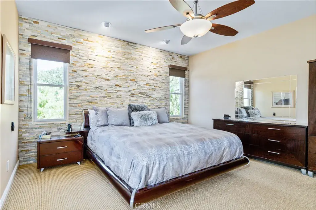 The backyard is a true sanctuary, featuring a large, sparkling pool ideal for floating under the sun or swimming laps for exercise. The cascading waterfalls and fountains are truly mesmerizing! Whether you’re hosting guests or enjoying a peaceful moment alone, this outdoor space is a showstopper. There is a small panel of solar for pool heating as well as a gas pool heater for the warm water lovers! Meander down the walkways to capture the true beauty of the property. The views from the backyard are breathtaking as you can see for miles!