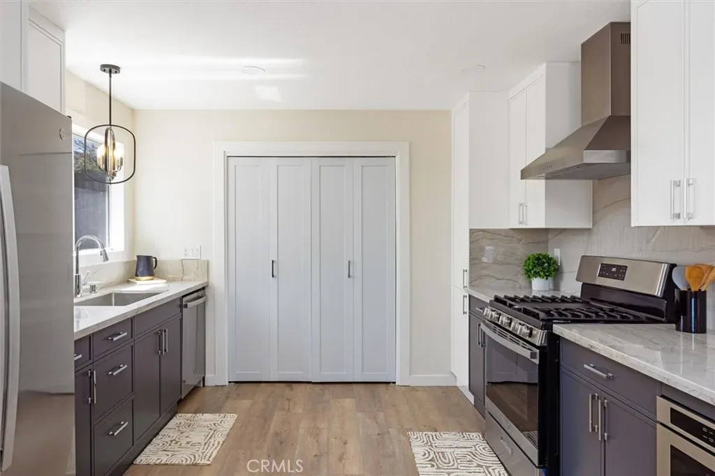 Additional highlights include a dedicated laundry alcove, generous storage throughout, a refinished two-car garage with backyard pass-through, and a custom outdoor water feature that adds a touch of tranquility to the space.