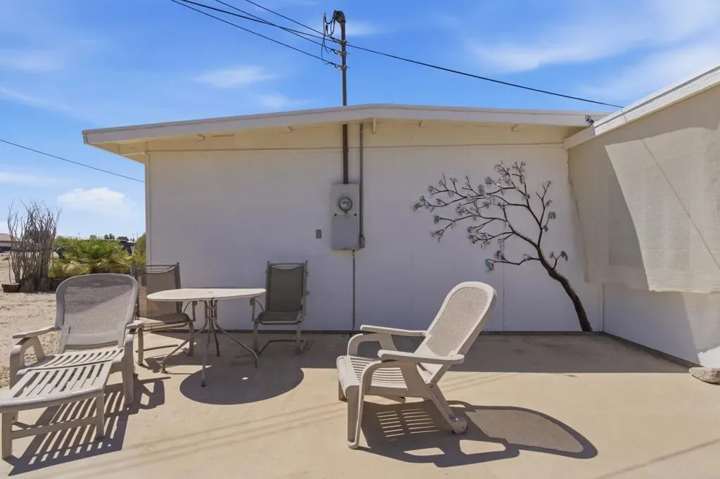 Rare 1965 Mid-Century Modern gem with breathtaking Salton Sea views! This meticulously maintained 2BD/1.5BA home (1,200 sq. ft.) radiates pride of ownership and architectural integrity. A true ‘move-in ready’ time capsule featuring a crisp, all-white interior–a perfect blank canvas for your style.Key Features:Pristine Preservation: All original working fixtures maintained in beautiful condition.Modern Upgrades: High-efficiency double-pane windows and an upgraded electrical panel.Flexible Space: Large sunroom easily converted into a 3rd bedroom, studio, or office.Outdoor Living: Beautiful wrap-around garden with mature landscaping and spacious patio areas.RV Ready: Includes a covered RV port plus additional RV access.Enjoy the desert lifestyle with vaulted ceilings, cooling ceiling fans, and iconic vintage character. Whether a stylish full-time residence or a weekend retreat, this property is a masterclass in MCM design.