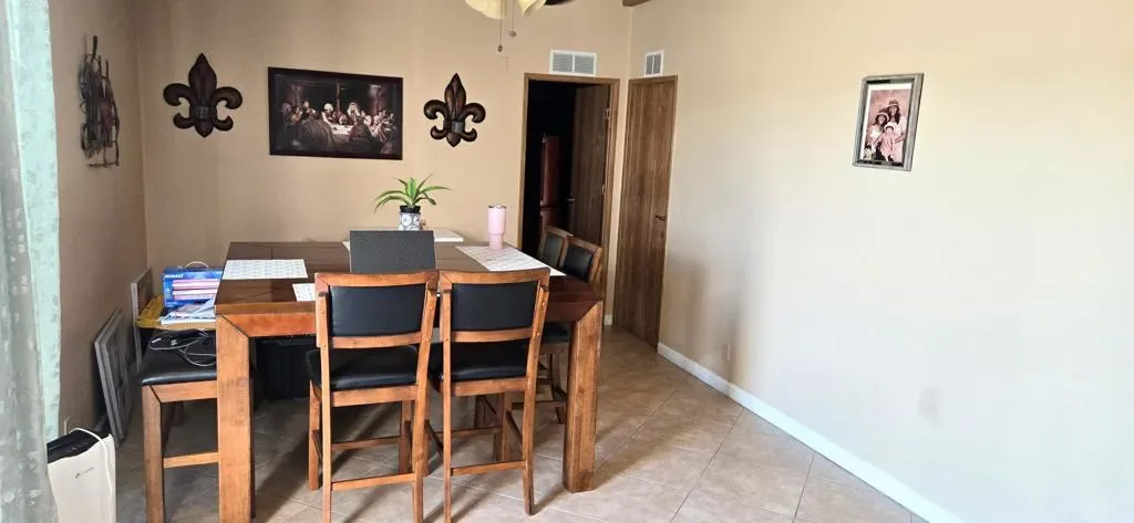 Spacious manufactured home featuring an open floor plan with a large living room. Flexible layout offers potential to add a third bedroom. Includes an indoor laundry room for added convenience. Situated on a generous 16,000+ sq ft fully fenced lot, providing ample space for vehicles, RVs, or recreational toys. Attached carport and easy access to Expressway 86.